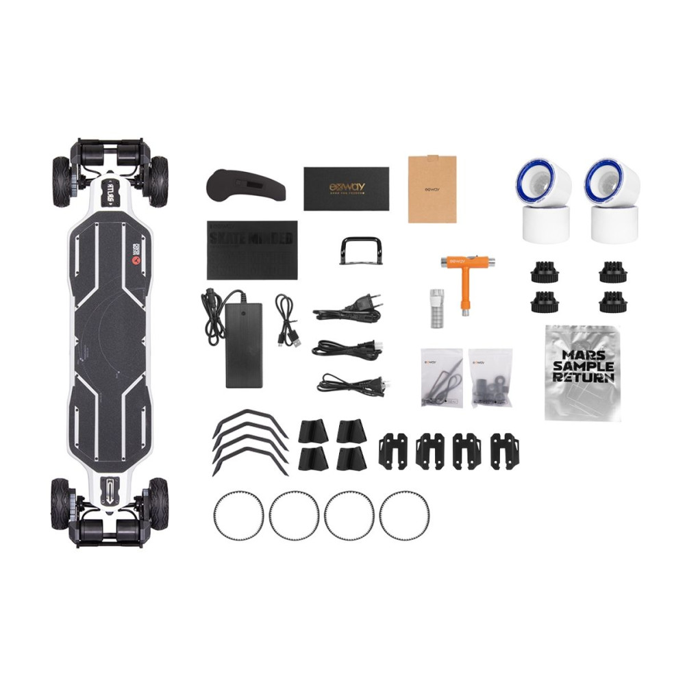 Az új ExSkate mobilalkalmazás lehetővé teszi a tábla viselkedésének részletes programozását, a teljesítmény- és fékgörbék módosítását és sok más testreszabást. Ezen kívül az új alkalmazás lehetővé teszi az azonnali csatlakozást az Atlas Pro-hoz, és rendelkezik az útvonal rögzítésére és a telemetriai adatok követésére szolgáló funkciókkal a menet közben.A csomag tartalma: