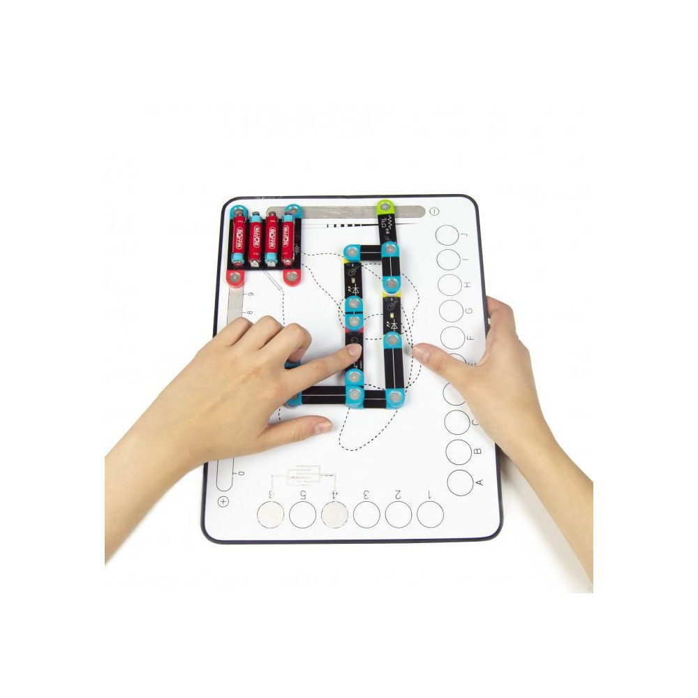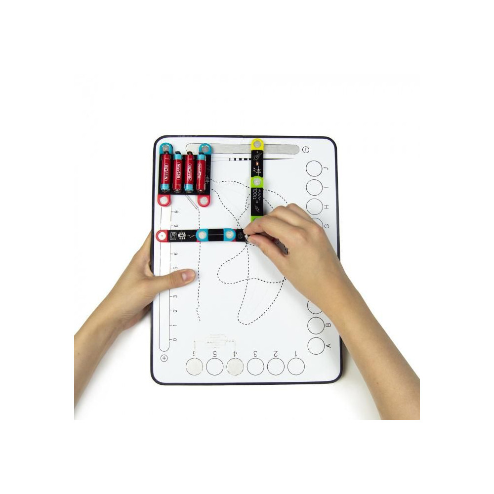 Az összes projekt alapja egy mágneses pad, amelyre gyorsan és egyszerűen rögzítheti az egyes alkatrészeket, hogy szórakoztató áramköröket hozzon létre. Minden csomag tartalmaz egy oktatókönyvet is, amely a legegyszerűbb projektektől az összetett projektekig elkalauzolja Önt. Minden egyes projekthez találsz egy grafikus ábrázolást a vezetékezésről, valamint egy leírást arról, hogy mit várhatsz az áramkörtől.