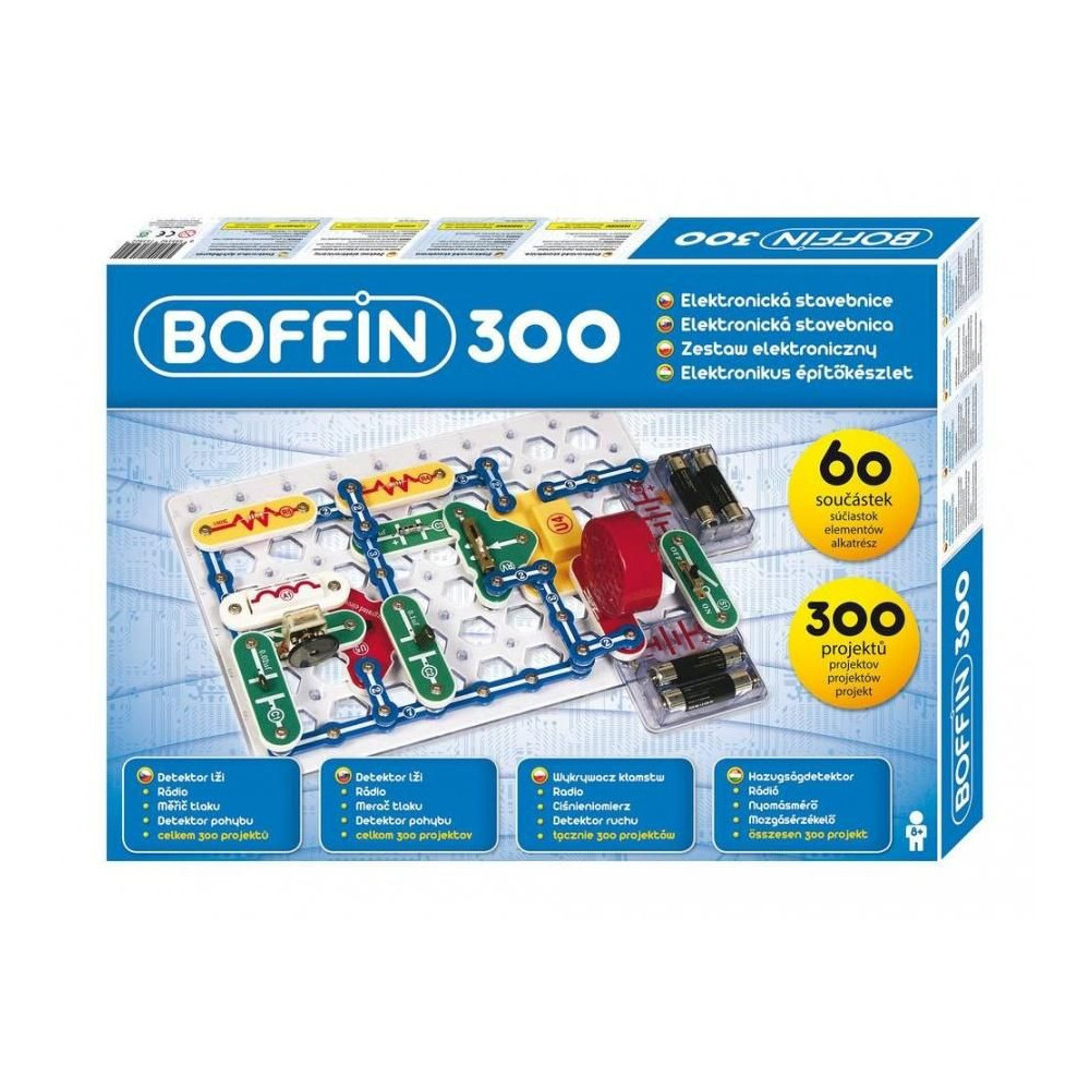 A Boffin I 300 elektronikus építő készlet 60 alkatrészt tartalmaz, amelyekből legalább 300 projekt építhető.