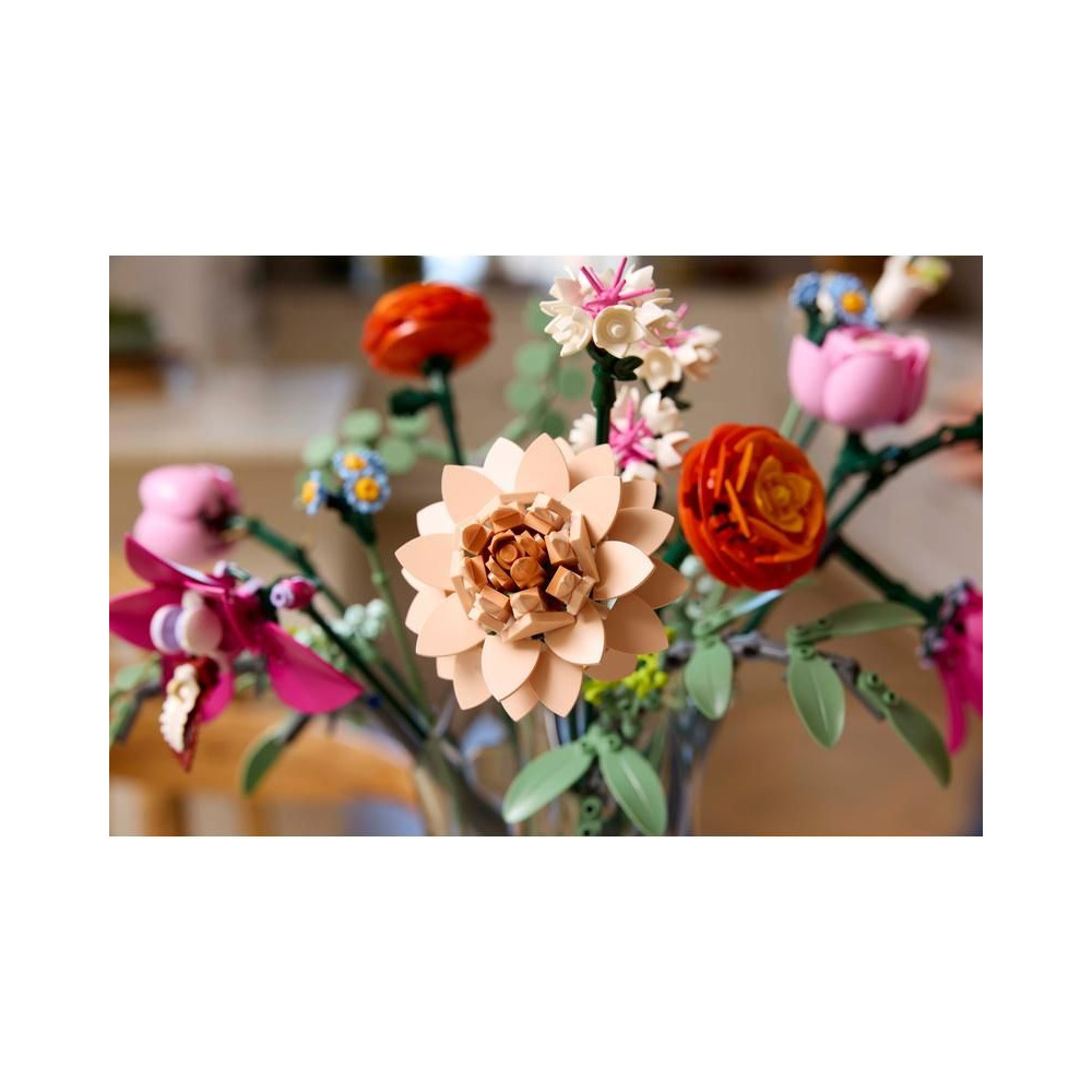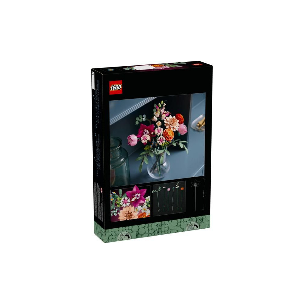 A feltörekvő virágkötők remekül fogják magukat érezni, miközben 15 LEGO virágból álló csokrot építenek, köztük százszorszépeket, búzavirágot, eukaliptuszt, bodzavirágot, rózsákat, boglárkákat, Cymbidium orchideákat, rózsaszín dáliákat és kültéri virágokat. Minden virág szára állítható, így a csokrot tetszés szerint rendezheted el, és otthon vagy az irodában is kiállíthatod. A virágokat más LEGO csokrokkal (külön kaphatók) együtt rendezheted, így egy nagyméretű, egyedi kiállítási darabot hozhatsz létre.