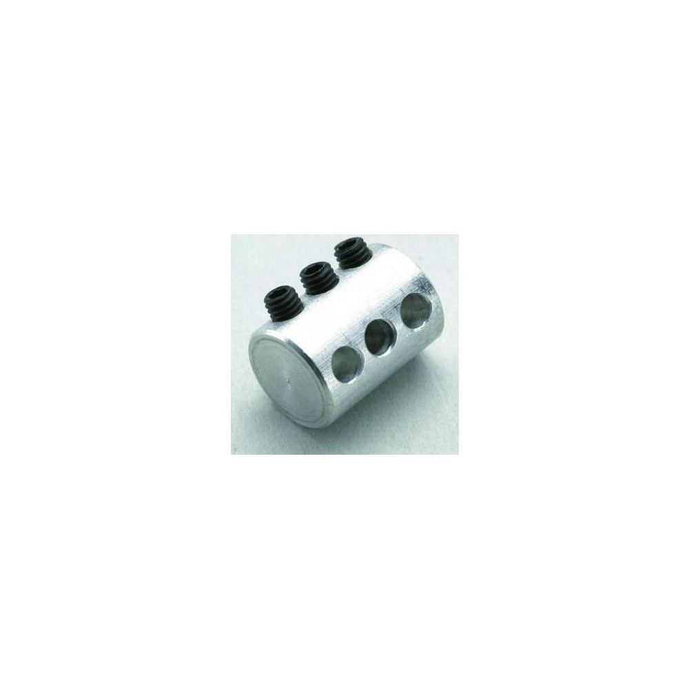 Háromszoros összekötő rúdcsatlakozó. Hossza 14 mm, teljes átmérő 10 mm, furatátmérő 3 mm.