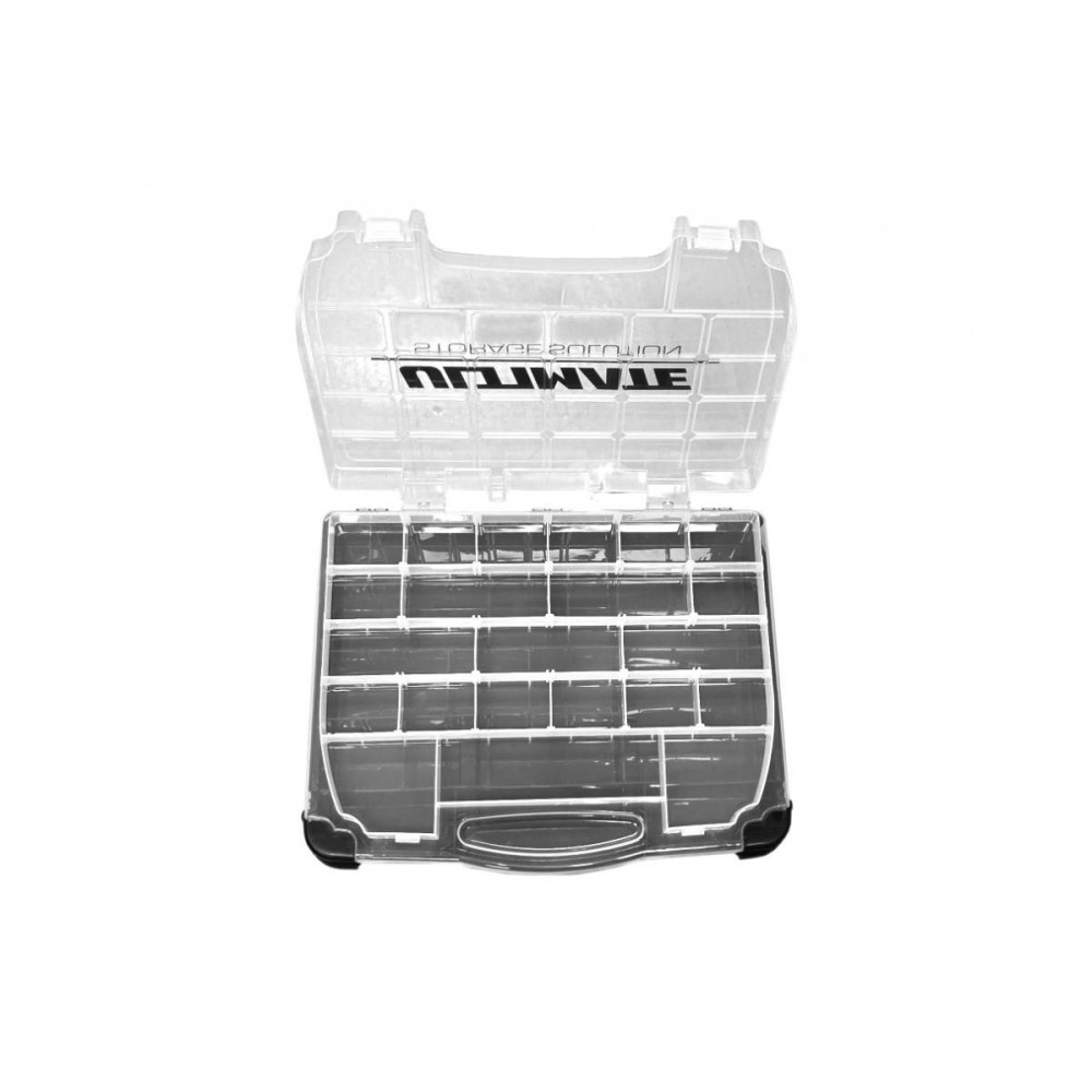 Az Ultimate Racing multifunkcionális alkatrész-tárolója a legjobb választás azoknak a versenyzőknek, akik praktikus és rendezett megoldást keresnek kiegészítőik és alkatrészeik tárolására. Ez a doboz kiváló minőségű anyagokból készült, és a tartósságot kompakt és könnyű kialakítással ötvözi, így ideális a versenypályára való szállításhoz.