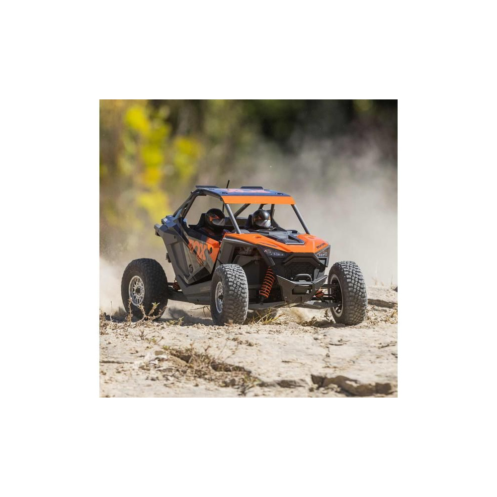 A Losi Polaris RZR Pro R teljesen összeszerelt és indításra kész, egy teljes méretű nagyautó kinézetét utánozva, öntött karosszériaelemekkel, védőkerettel és hivatalosan engedélyezett BFGoodrich KM3 gumiabroncsokkal a Raceline A93 Podium kerekeken. A modellbe Spektrum AC meghajtót szereltek, amely 2S vagy 3S LiPol akkumulátorral (nem tartozék) működtethető és a csúcssebessége meghaladja a 70 mérföld/órát!
