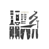 - Extrém 8 mm vastag alumínium felfüggesztési csapszegek, amelyeket nyolc 4 mm-es rögzítőcsavarral rögzítenek, állítható kompozit blokkokat tartalmaznak a konvergencia érdekében.