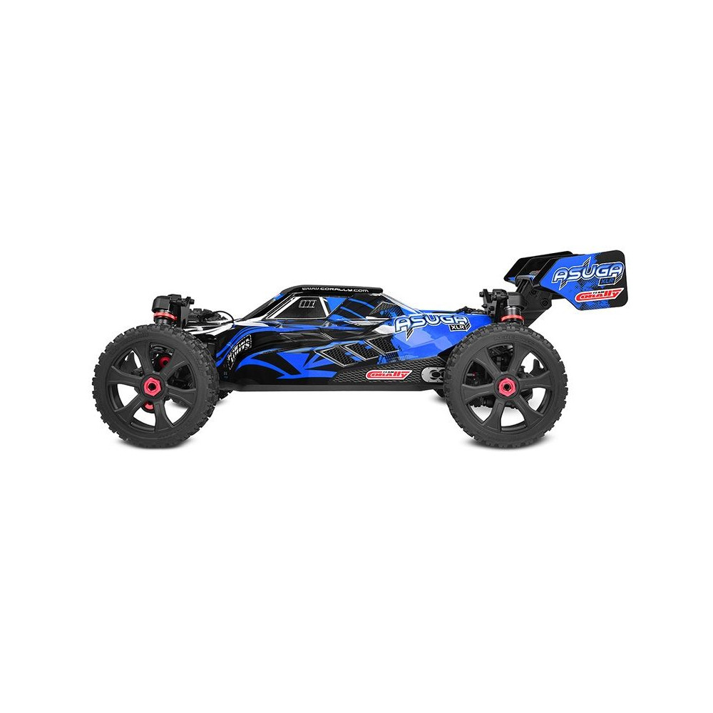 többi modellnél nagyobb, az Asuga XLR megnövelt hasmagasságot, hatalmas rugóutat és túlméretezett alkatrészeket kínál egy teljesen új alvázon, amely a Team Corally 1/8-os modelljei által ismert, bevált, tartós és 6S-képes hajtásrendszert használja