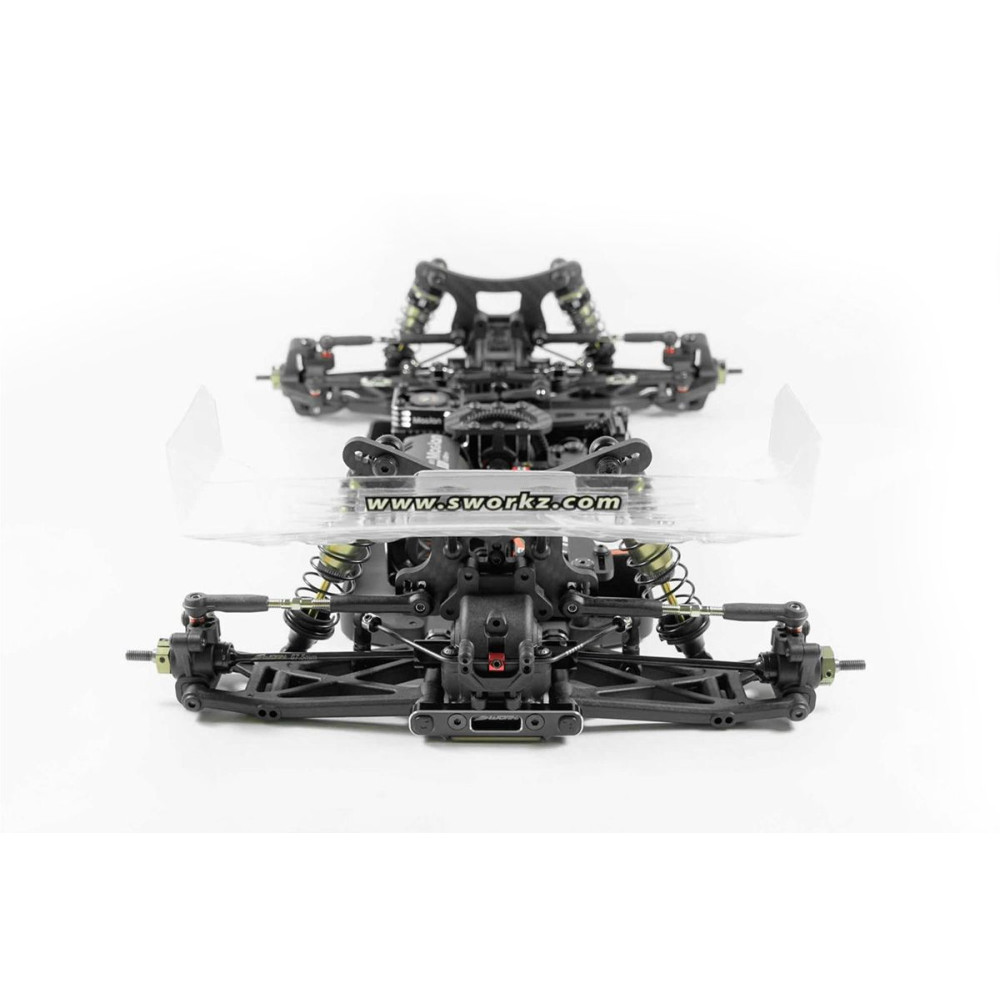 A SWORKz S14-4D készlethez alapfelszereltségként járnak a Black Line rugók, amelyek jól megtervezettek, forgatható fix rugótartókkal. Az S14-4D készlet egy teljesen új, 5,5 mm-es gömbcsapos felfüggesztési rendszert és 3,5 mm-es nagy teherbírású nyakrudakat tartalmaz. Szintén tartalmazza a vadonatúj állítható ackermann-lemezt egy könnyű, haranglábas kormányművel ellátott kormányrendszerrel.