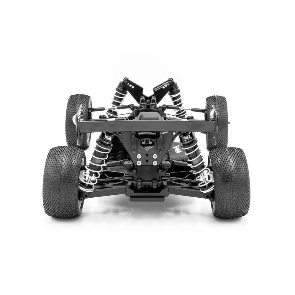 A modell nagyméretű alumínium lengéscsillapítókkal rendelkezik, amelyek a jármű magasságának gyors és egyszerű beállítását szolgálják, valamint bütykös anyákkal, fém áttételű differenciálművekkel, állítható csúszókuplunggal és CVD kardántengelyekkel az első tengelyen, valamint első és hátsó stabilizátorral van ellátva - mind golyóscsapágyazva. Az alumínium váz oldalsó védelemmel lehetővé teszi, hogy a jármű minden versenykörülménynek ellenálljon.