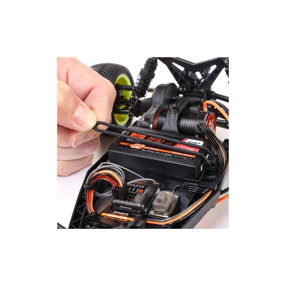 A népszerű 1:16 méretarányú RC modellautó Buggy Losi Mini-B erős váltóáramú meghajtással van felszerelve a gyors ragadozó vezetéshez. RTR felszereltséggel, Spektrum SLT 2,4 GHz-es adóval, SR315 vevővel, Smart G2 810mAh 2S LiPol akkumulátorral, fém fogaskerekes szervokormánnyal és Smart LiPo USB-C töltővel rendelkezik.