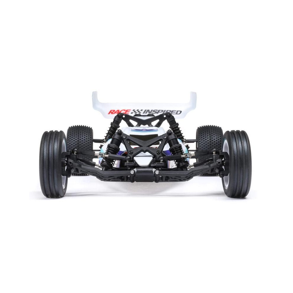 A Losi Mini-B 2WD versenybogárkocsi középmotoros konfigurációja, a jól kiegyensúlyozott futómű alapja a nagy tapadású felületeken, amely lehetővé teszi a jobb teljesítményt több versenyfelületen, valamint a jobb kormányzási pontosságot és a nagy tapadást.
