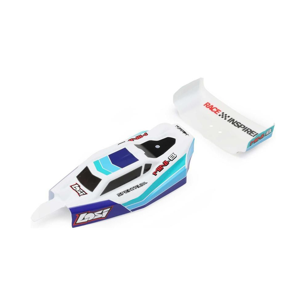 Pótalkatrész RC modellautókhoz Losi Mini-B BL: karosszéria, szárny, kék.
