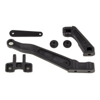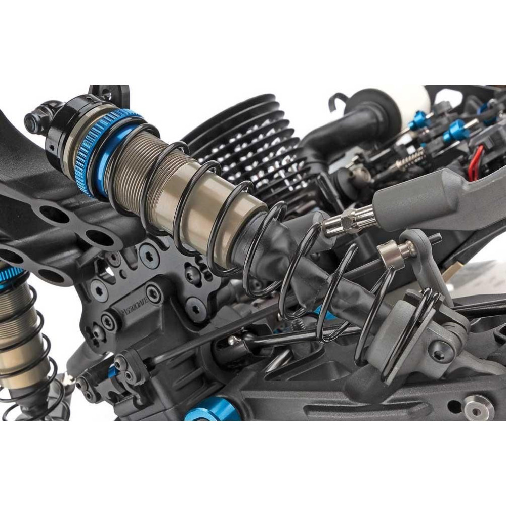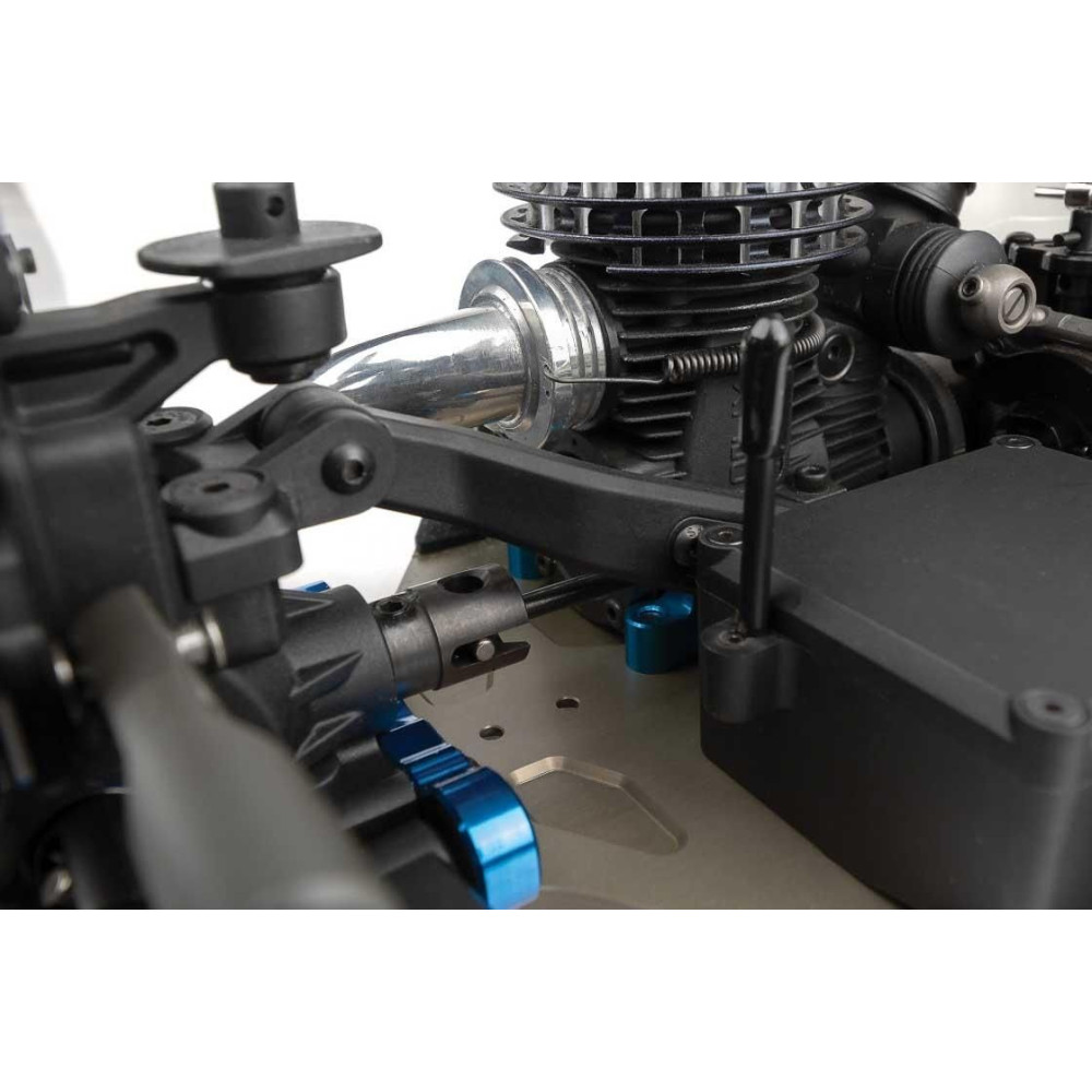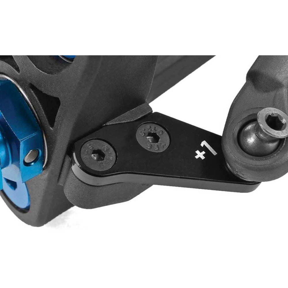 - RC8B4 alumínium kormányközéprész, amelyet a frissített első geometriához terveztek, könnyű és tartós. Az