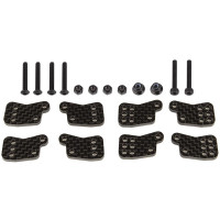 - RC8B4e karbon első felső lemeze központosítja az első alvázmerevítőt, így minden irányban kiegyensúlyozottan hajlítható .Az