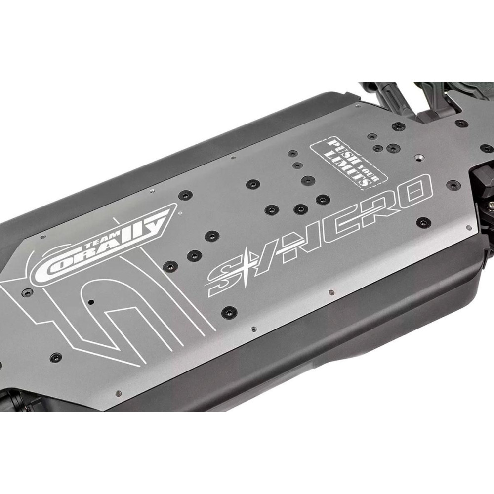Team Corally egyáltalán nem fogta vissza magát a Syncro4 alvázzal. A korábbi modellekből, például a Radix6-ból és a Sketerből jól ismert és bevált felfüggesztőkarok, valamint a robusztus első és hátsó keresztlengőkarok felhasználásával a Syncro4 bármilyen terepen csúcsteljesítményt nyújt. A Spark XB6-ból ismert 4 mm-es CNC marású karrögzítések és a precíziósan megtervezett vezetékek (kormánymű, szervó és hátsó felső karok) beépítésével a Syncro4 megőrzi tartósságát és páratlan teljesítményét.