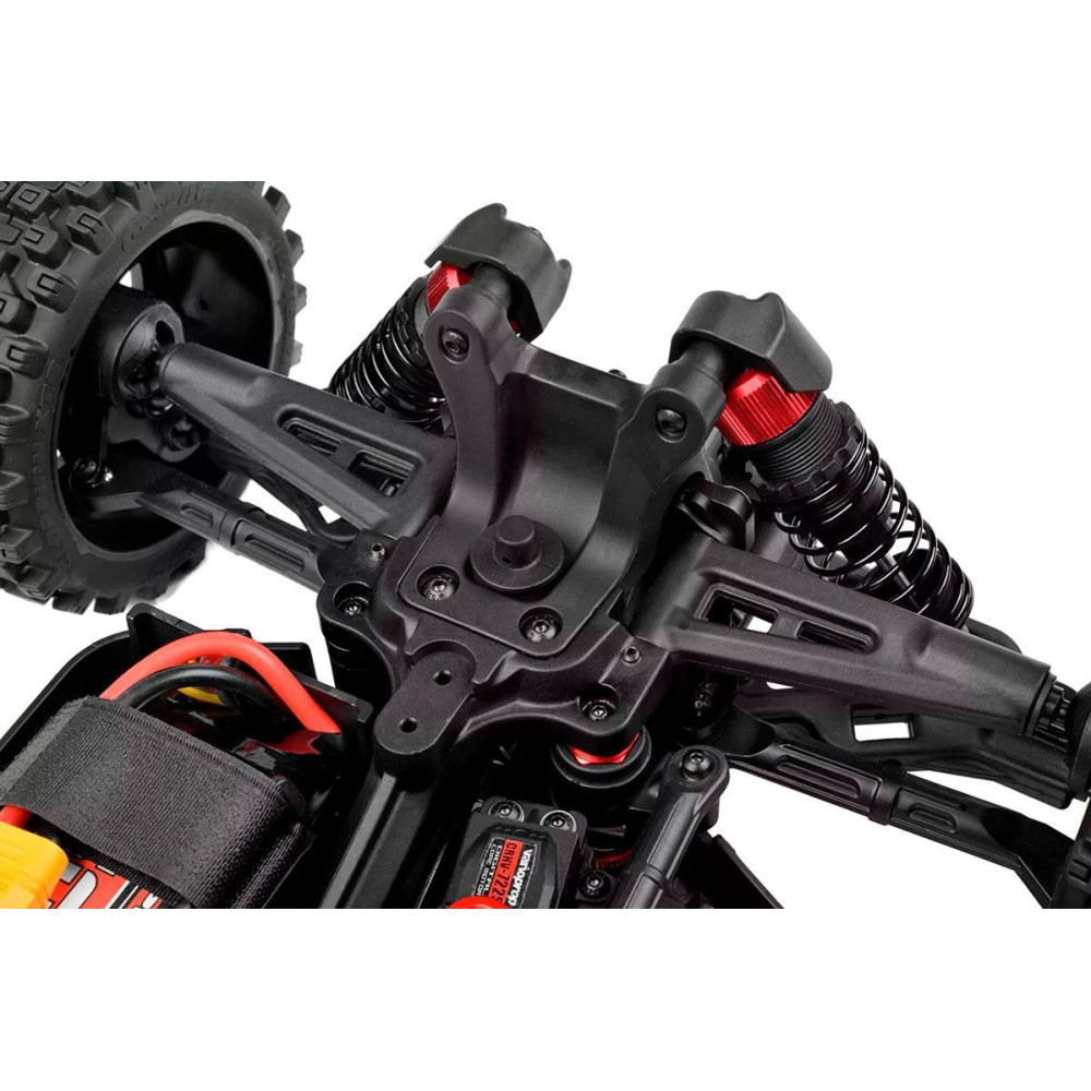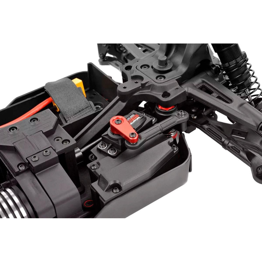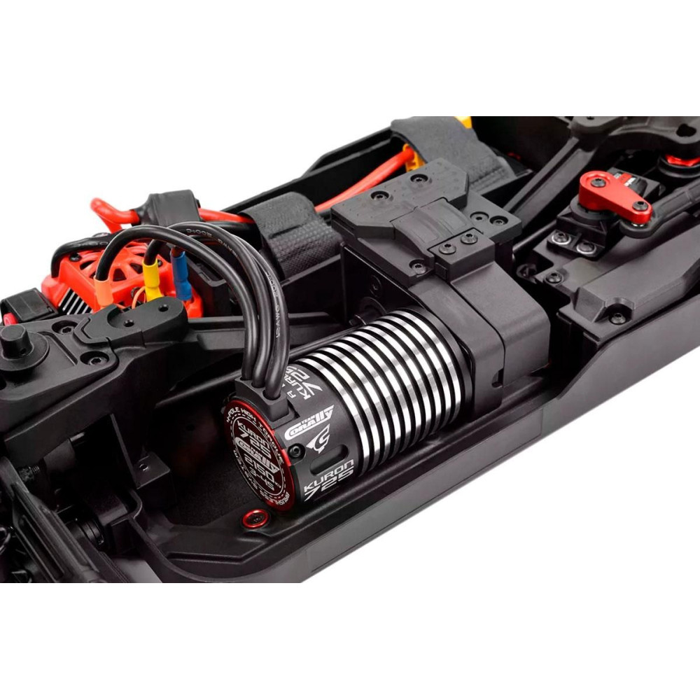 a lenyűgöző Kuron 725 2150kV 4 pólusú, érzékelő nélküli, 4 pólusú, kefe nélküli AC motor áll, amely a teljesítmény és a hatékonyság páratlan kombinációját biztosítja. Ennek a szörnyetegnek a társa a Torox 135 elektronikus sebességszabályozó, amely a 4S LiPo teljesítményének megszelídítése során a simaság és a megbízhatóság terén is kiemelkedik. A vezérlési pontosságot a HV7225 digitális nagysebességű szervó erős fém fogaskerekekkel és lenyűgöző 25 kg nyomatékkal fokozza. Ez az élvonalbeli elektronika, amely olyan modellek bevált alkatrészeihez hasonlít, mint a Sketer és a Radix4, izgalmas és megbízható off-road élményt garantál a Syncro4-gyel.