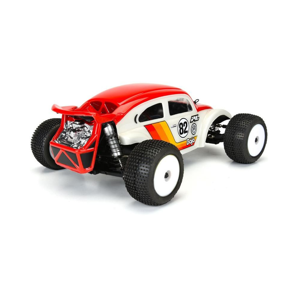 A Pro-Line Volkswagen® Baja Bug karosszéria a Losi® Mini-T™ 2.0 RC modellautóhoz készült! VW® Baja Bug. A hivatalosan licencelt retro karosszéria teljesen megváltoztatja a Mini-T™ 2.0 megjelenését! A szélesített sárvédőktől kezdve a szabadon hagyott hátsó motor részletein át a kiegészítő hátsó szárnyig. Világos, festetlen matricák.