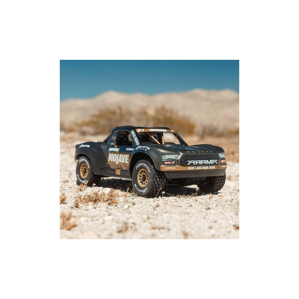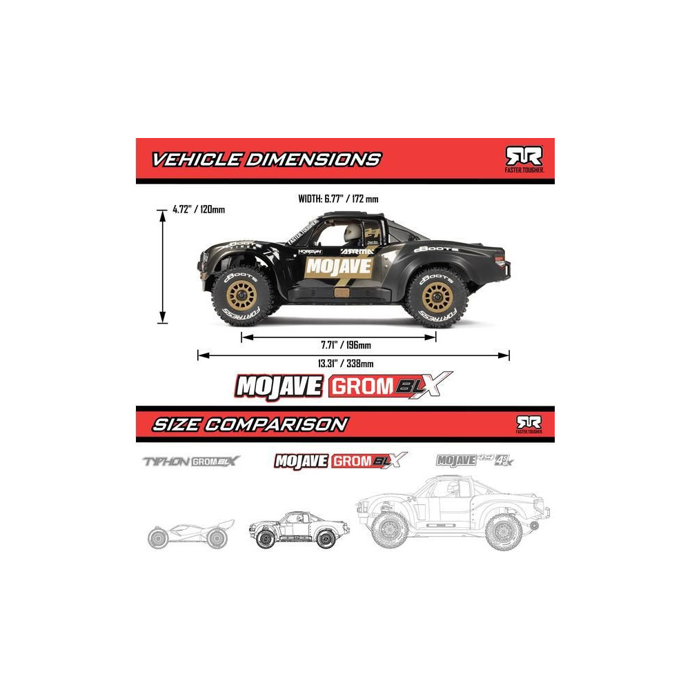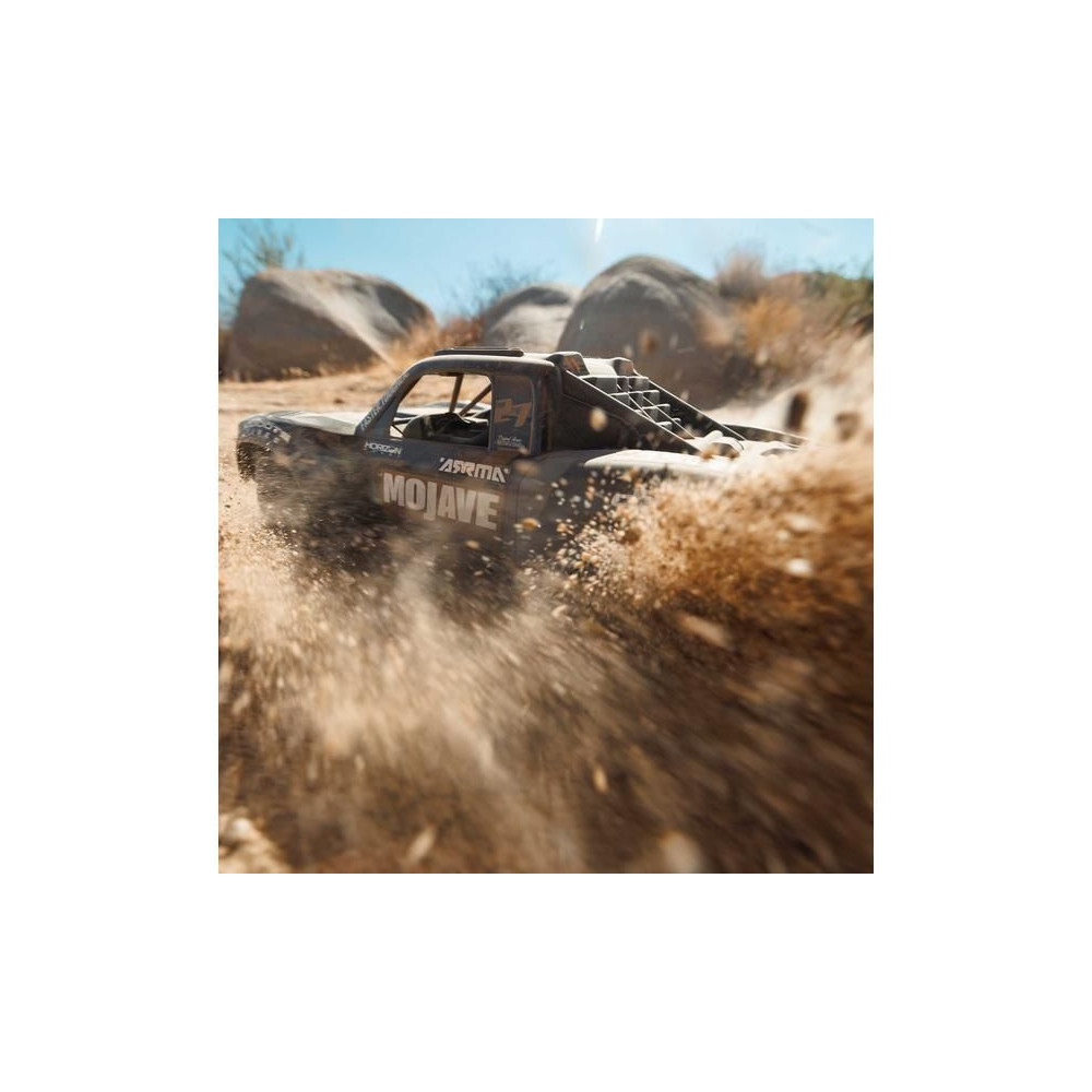Az Arrma Mojave Grom autó távirányítású modellje 1:16 méretarányban, 4WD meghajtással, erős AC motorral és akár 56 km/h sebességgel. Precízen megépített, kisméretű, szórakoztató sivatagi terepjáró modell. Gyárilag beépített fejlesztések, DSC stabilizáció.
