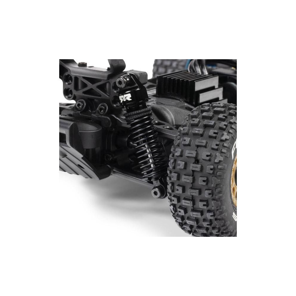 A brutális akadályokon, ugrásokon és nagy bukkanókon való áthajtáshoz a modell kiváló minőségű, tartós alumínium testű lengéscsillapítókkal van felszerelve, és olajjal van feltöltve, ami megakadályozza a rezgést az ütéseken.