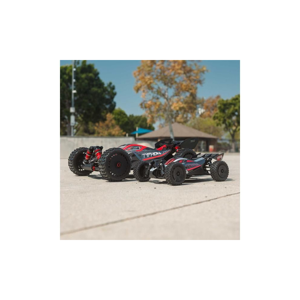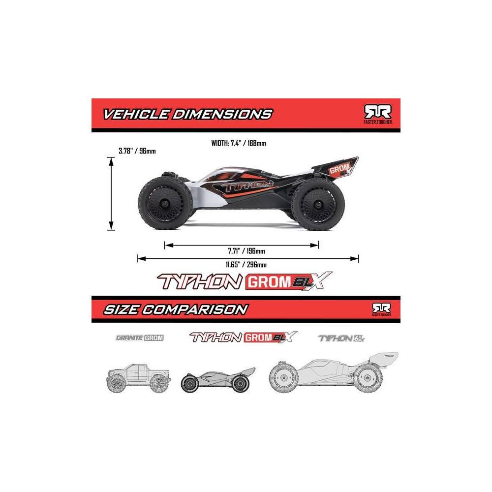 Arrma Typhon Grom távirányítós autómodell 1:14 méretarányban, 4WD meghajtással, erőteljes AC motorral és akár 56 km/h sebességgel. Precízen megépített, kis mókás buggy. Gyárilag beépített fejlesztések, DSC stabilizáció.