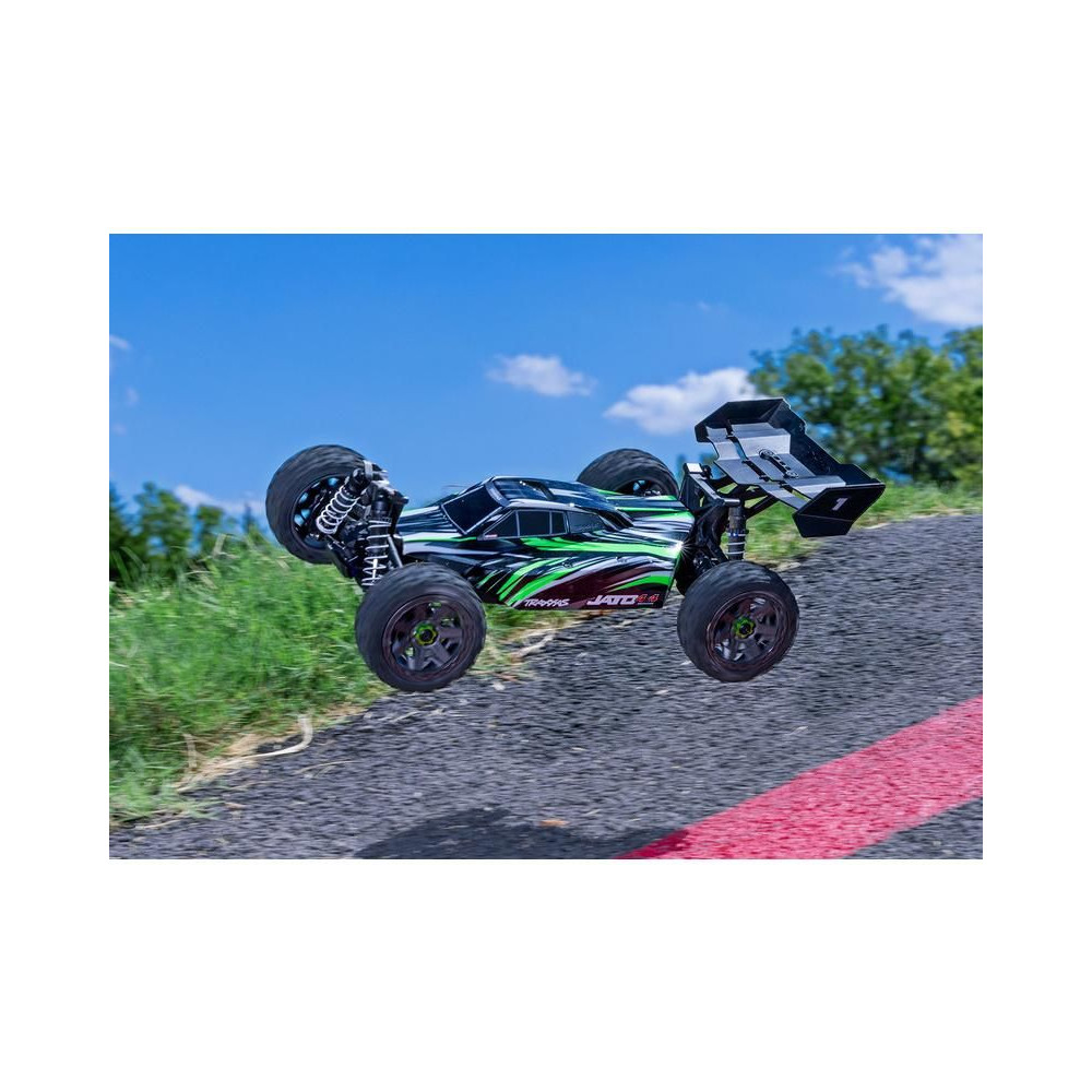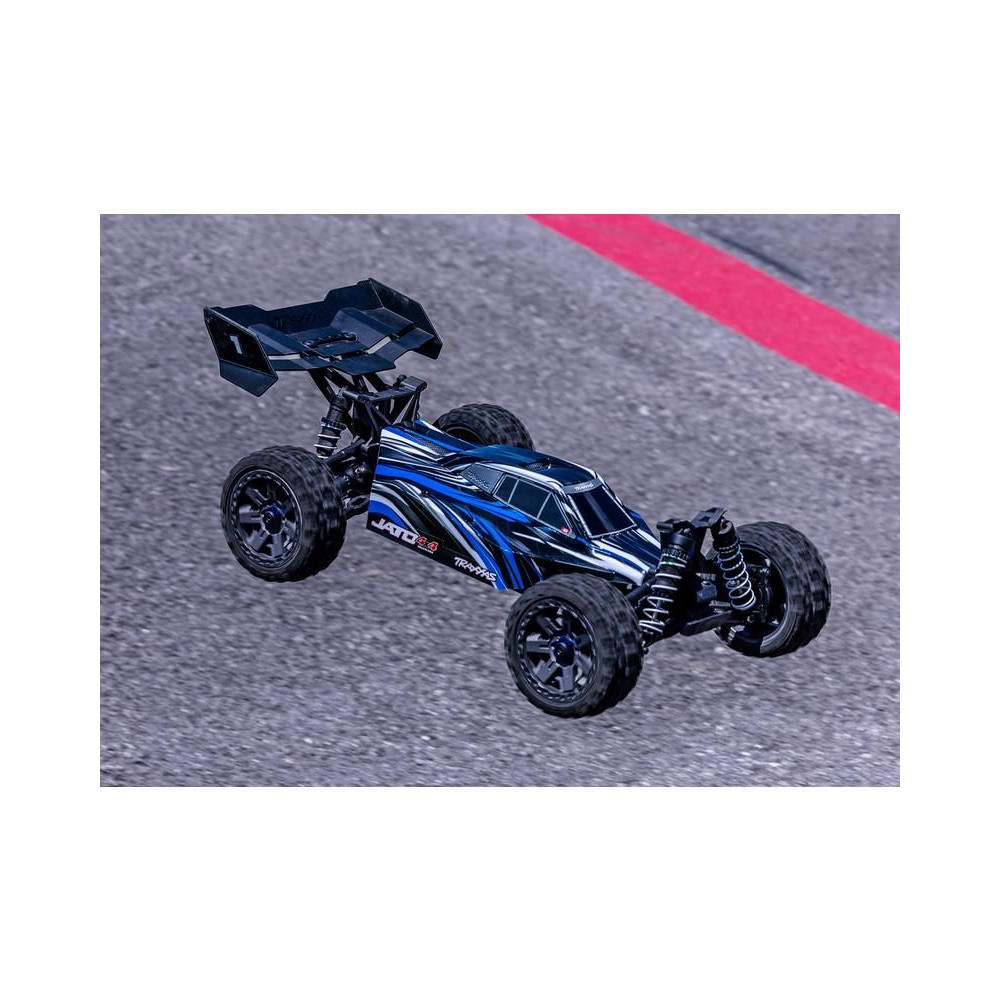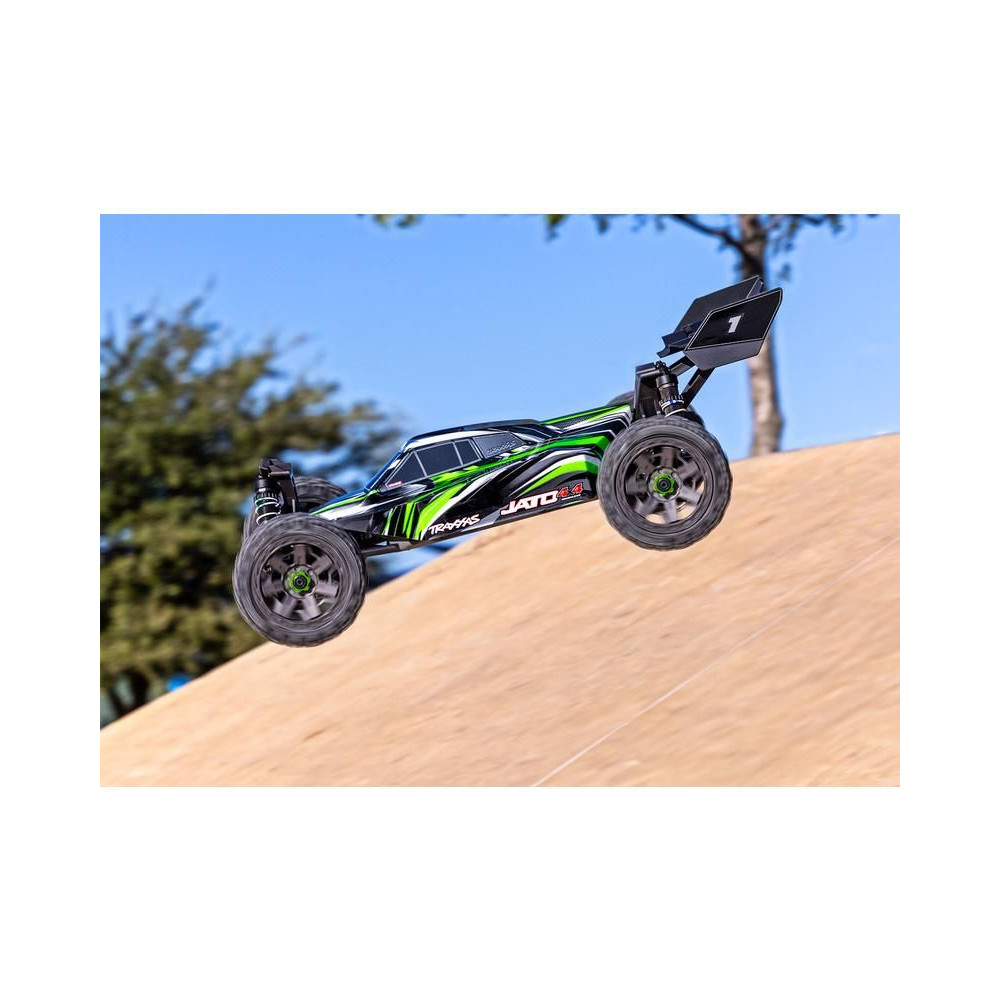 A Traxxas Jato 1:8 RC buggy versenymodellként sebességet, tartósságot, precíz irányíthatóságot és mindenekelőtt élvezetes utazást kínál. Egy BL-2S szabályozóval ellátott váltakozó áramú motor hajtja, és akár 48 km/h sebességgel is képes haladni! Klip nélküli karosszériát, nagy tartósságú alkatrészeket tartalmaz - Extreme Heavy Duty és 4WD hajtás. TQ 2,4 GHz-es távirányítós készlet.