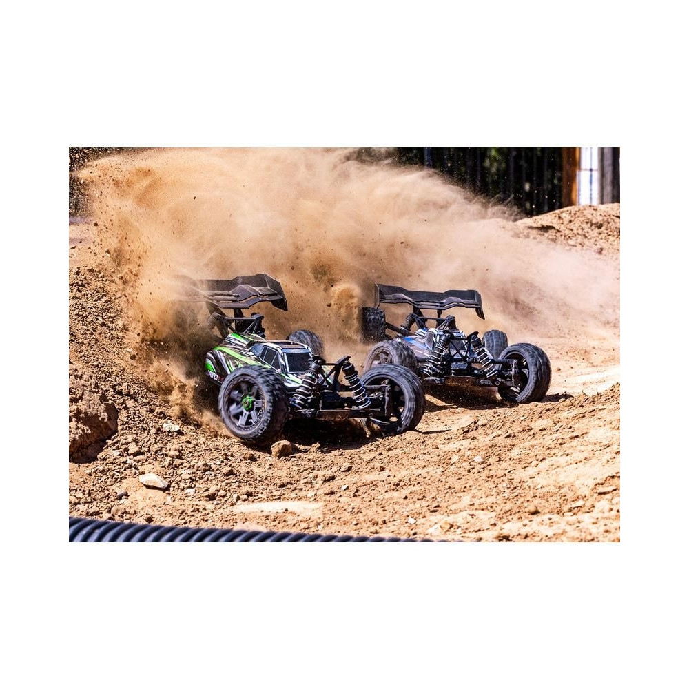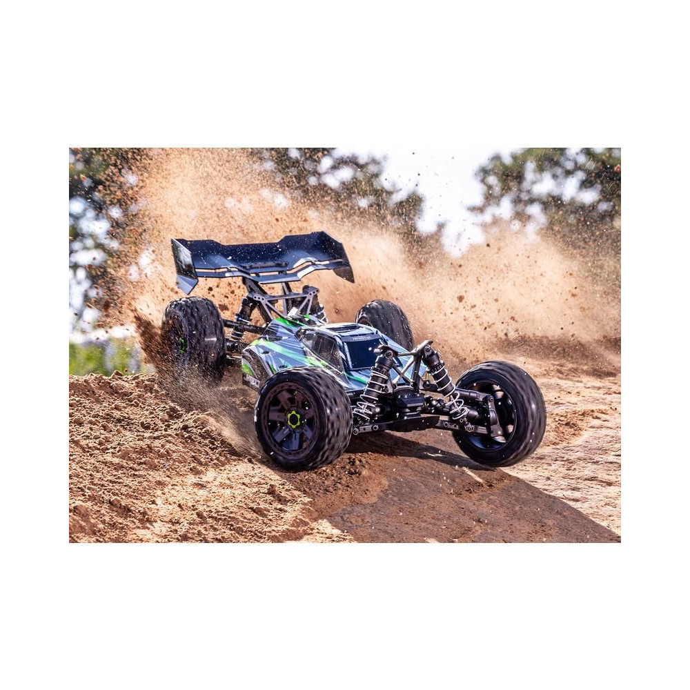 A három vezetési móddal rendelkező szabályozó garantáltan szórakoztató felnőttek és gyermekek számára, köszönhetően az 50%-os teljesítménykorlátozás lehetőségének. A megnövekedett sebesség és gyorsulás ellenére az egyenáramú meghajtáshoz képest továbbra is megfizethető a 2S LiPo akkumulátorokkal való működés. A vezérlést egy TQ 2,4 GHz-es adó biztosítja, precíz vezérlőmechanikával és nagy hatótávolsággal. Természetesen tuning alkatrészek széles választéka is elérhető, beleértve a komplett alkatrészeket is.