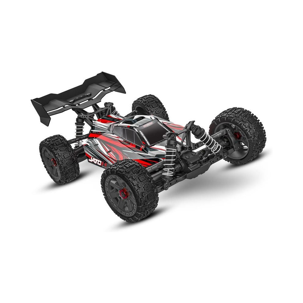 A Traxxas Jato 1:8 méretarányú buggy RC modellje sebességet, tartósságot, 4x4-es meghajtást és mindenekelőtt élvezetes utazást kínál. Alacsony súlypontú alvázzal, precíz felfüggesztési geometriával és optimális súlyelosztással rendelkezik az agilitás és a kiváló vezetési dinamika érdekében. Ennek eredményeként a Jato 4x4 egy versenybuggy pontosságával kezelhető, és a Traxxas modellekre jellemző összes felhasználói előnyt és egyszerűséget biztosítja. A modellt egy BL-2S szabályozóval ellátott AC motor hajtja, és akár 48 km/h sebességre is képes! Klip nélküli testtel rendelkezik a könnyű akkumulátorcsere érdekében, valamint alkatrészekkel a nagy tartósság érdekében - Extrém nagy teherbírású . A bevált TQ 2,4 GHz-es RC készlet teszi teljessé ezt a csúcskategóriás RC modellt.