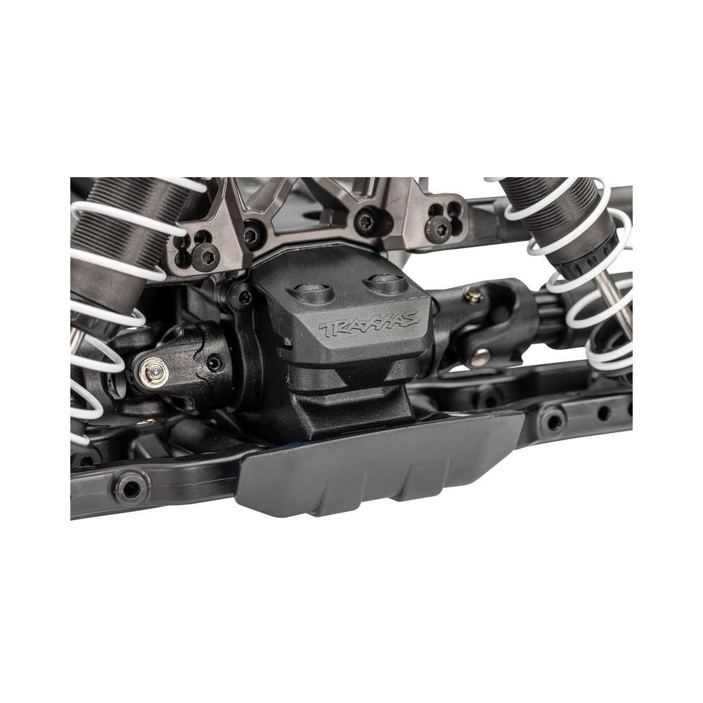 A gyárilag beépített felfüggesztési alkatrészek és hajtáselemek a nagy tartósság érdekében - Extreme Heavy Duty - a Traxxas által használt legtartósabb anyagokból készülnek. A szilárdságot tovább növeli a központi megerősítés és a nyírás elleni kettős rögzítésű lengéscsillapító tornyok. A robusztus féltengelyek továbbfejlesztett kardáncsuklós rögzítéssel rendelkeznek.