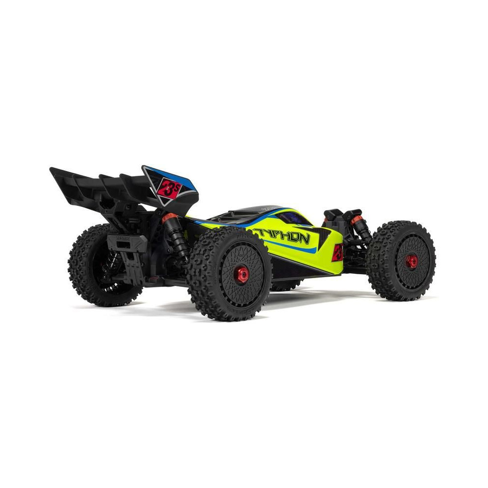 Az Arrma Typhon 223S BLX típusú Buggy távirányítós modellautó 4WD meghajtással, független felfüggesztéssel, olajos lengéscsillapítókkal és erőteljes AC hajtással, akár 80 km/h sebességet is elérhet. Mindez megfizethető áron egy ilyen erős modellhez képest. A kiváló vezetési tulajdonságokat a középső és tengelydifferenciálművel ellátott összkerékhajtás biztosítja. Exkluzív DSC menetstabilizáló rendszer is benne van a rendszerben. Az RC autó gyerekeknek, felnőtteknek, kezdőknek és tapasztalt vezetőknek készült, akik egy kész, tartós és gyors modellt kapnak. Mindez egy szépen kidolgozott testbe van csomagolva, rejtett, rögzítőrendszerrel.