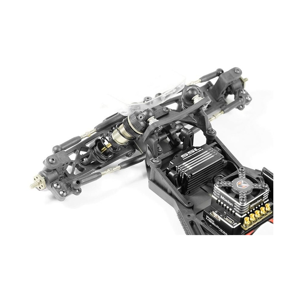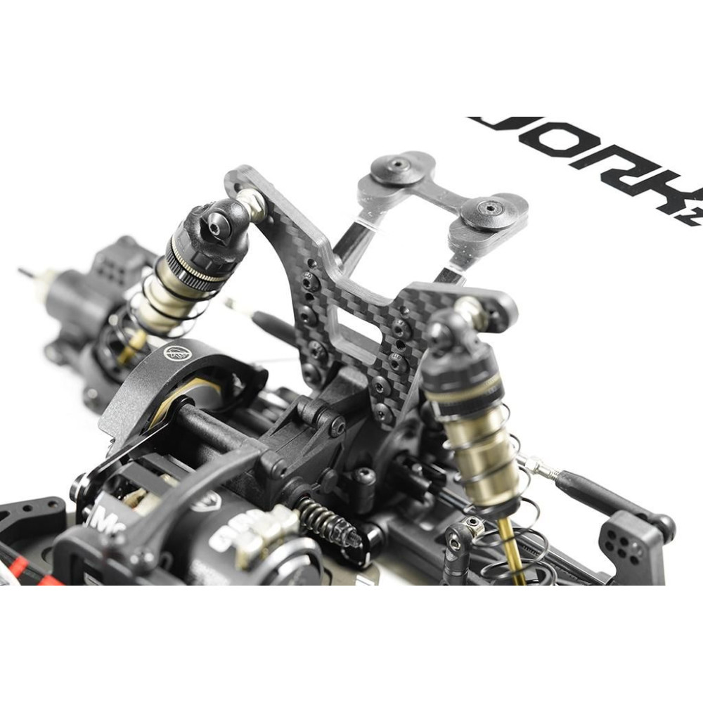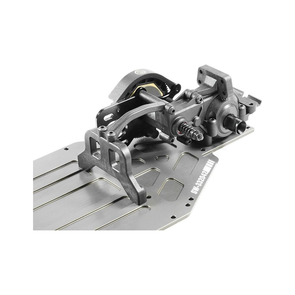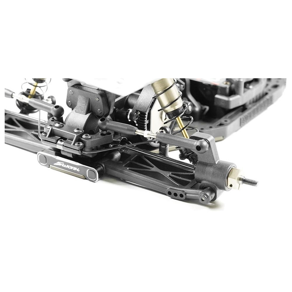 Az S12-2CE EVO váz része egy vadonatúj 5,5 mm-es gömbcsap-rendszer. Állítható Ackermann-lemez és karbon kormánylemezek is járnak hozzá. Az S12-2C EVO új, ívelt alsó lengőkarokkal rendelkezik, amelyek a lengéscsillapítók alacsonyabb helyzetét biztosítják, és ezáltal alacsonyabb súlypontot eredményeznek.