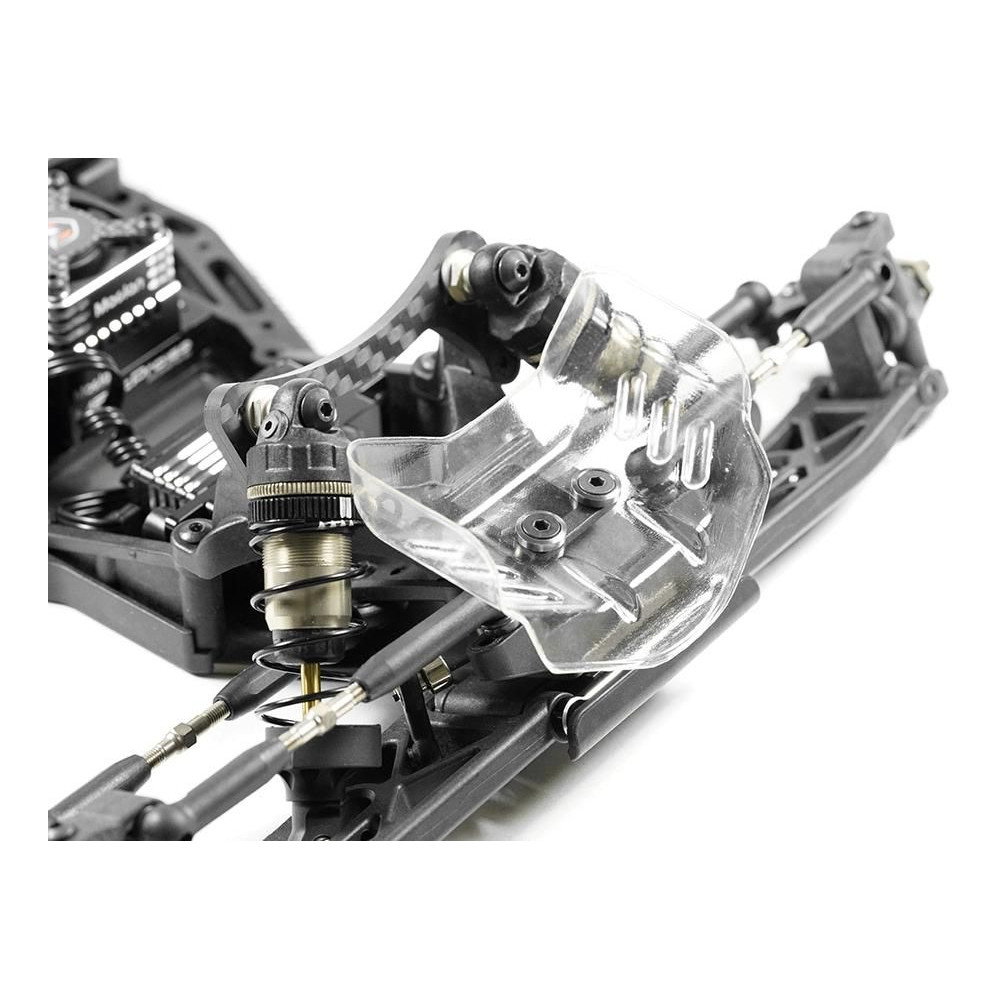 Az S12-2CE EVO a vadonatúj SWORKz Pro-Shock 1/10 (rövid változat) lengéscsillapító rendszerrel érkezik. A lengéscsillapítók új műanyag Emulsion Precision lengéscsillapító sapkákkal és tömítéses lengéscsillapító dugattyúkkal érkeznek. A készlet alapfelszereltségként 4 mm-es karbon első felfüggesztéseket/lengéscsillapítókat és újonnan tervezett első C-rögzítéseket tartalmaz. A teflon bevonatú lengéscsillapító dugattyúk biztosítják a lengéscsillapítók sima reakcióját. Az újonnan tervezett, fix rugótartókkal ellátott Black Line rugók az SWORKz S12-2C EVO alváz alapfelszereltségének részét képezik.