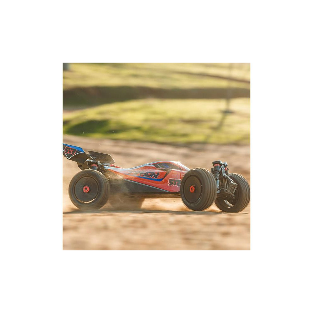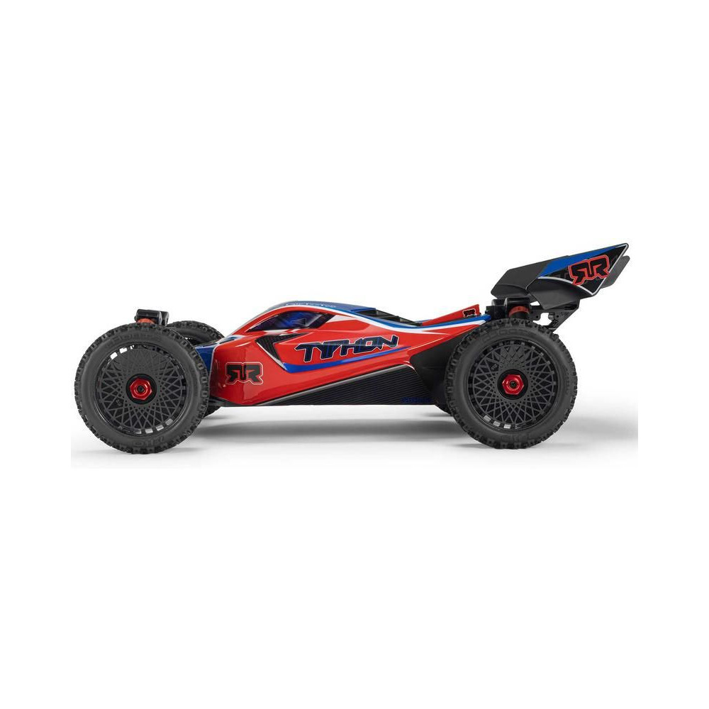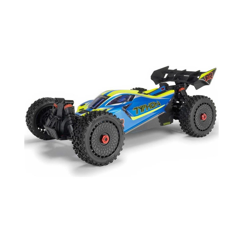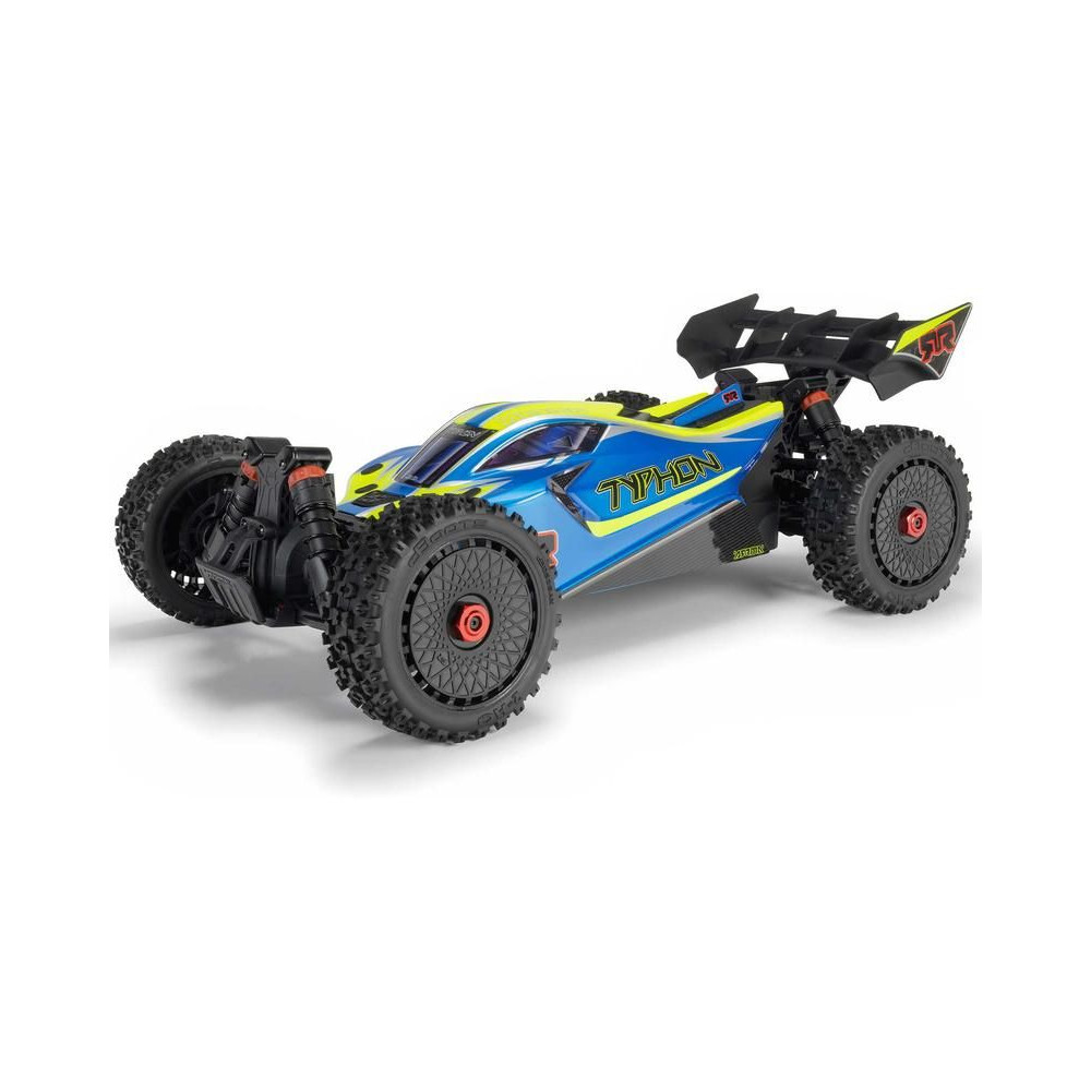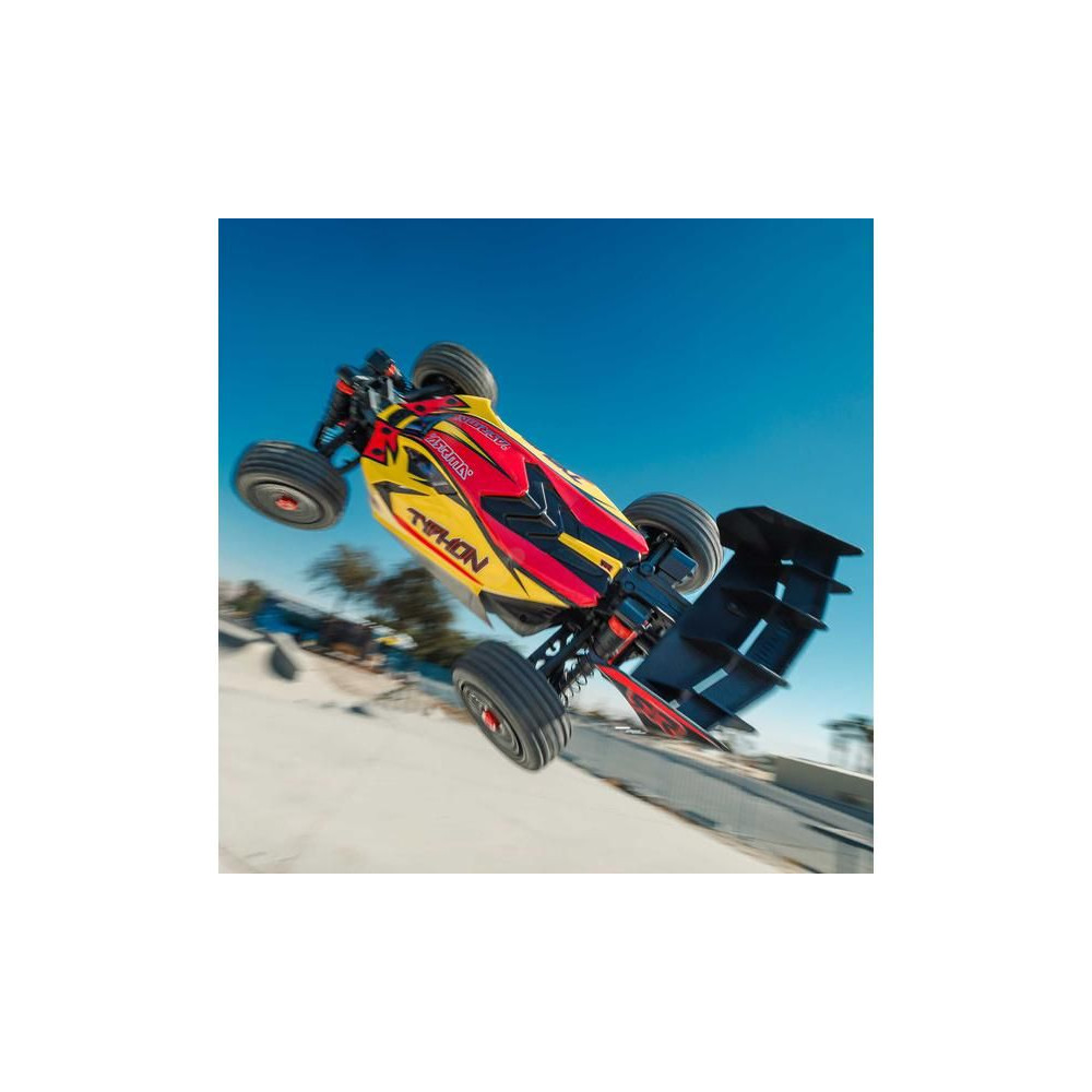 Az Arrma Typhon Mega RC buggy modell 1:8 méretarányban, 4x4 meghajtással, ideális gyerekeknek és kezdőknek, és a 11%-kal nagyobb, 665-ös (nagy sebességű) egyenáramú motornak köszönhetően azonnal extra teljesítményt nyújt. Akár 32 km/h sebességet is elérhet. Tartós alváz csúszólemezekkel és megemelt oldalakkal a szennyeződések bejutása ellen. Robusztus differenciálművek fém fogaskerekekkel. Olaj lengéscsillapítók. Csat nélküli test a könnyű elemcsere érdekében. Spektrum SLT2 távirányítós készlet.