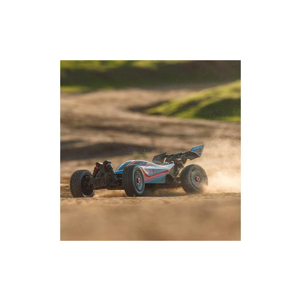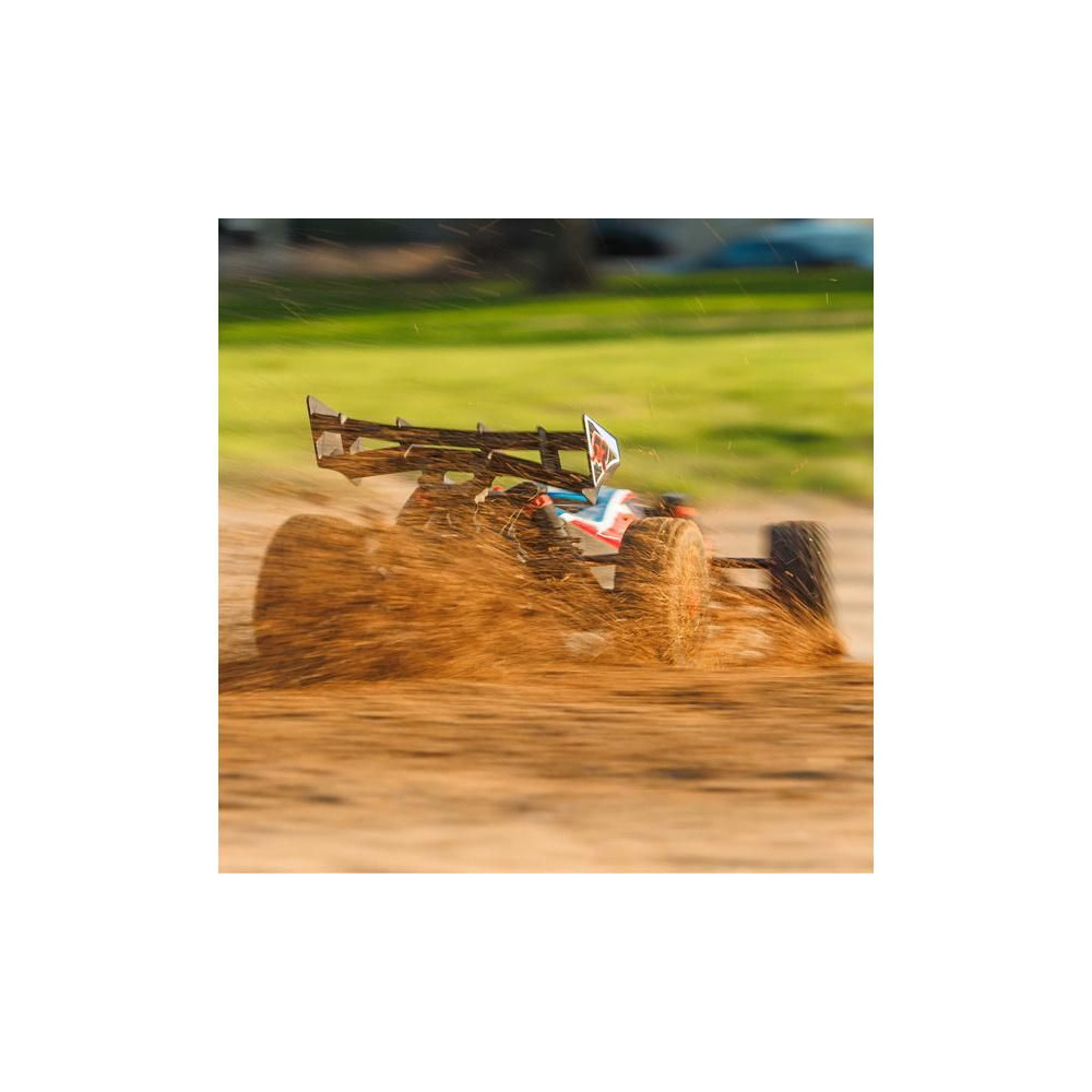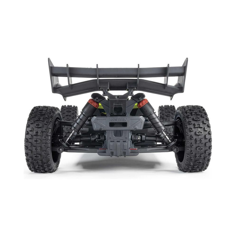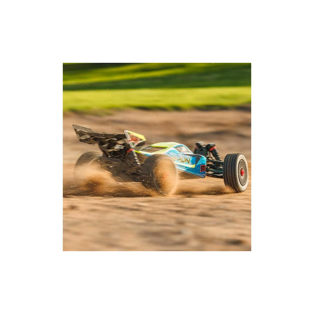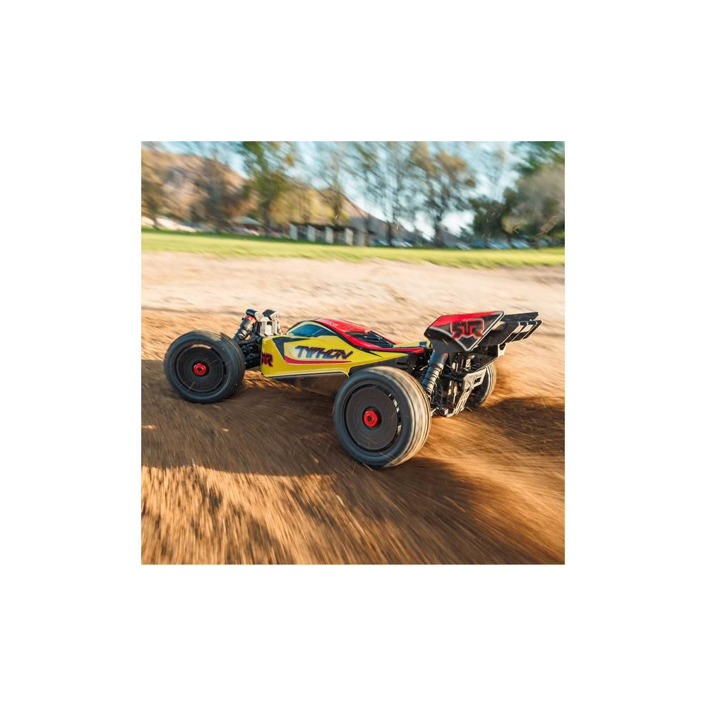 Az Arrma Typhon Mega RC buggy modell 1:8 méretarányban, 4x4 meghajtással, ideális gyerekeknek és kezdőknek, és a 11%-kal nagyobb, 665-ös (nagy sebességű) egyenáramú motornak köszönhetően azonnal extra teljesítményt nyújt. Akár 32 km/h sebességet is elérhet. Tartós alváz csúszólemezekkel és megemelt oldalakkal a szennyeződések bejutása ellen. Robusztus differenciálművek fém fogaskerekekkel. Olaj lengéscsillapítók. Csat nélküli test a könnyű elemcsere érdekében. Spektrum SLT2 távirányítós készlet.