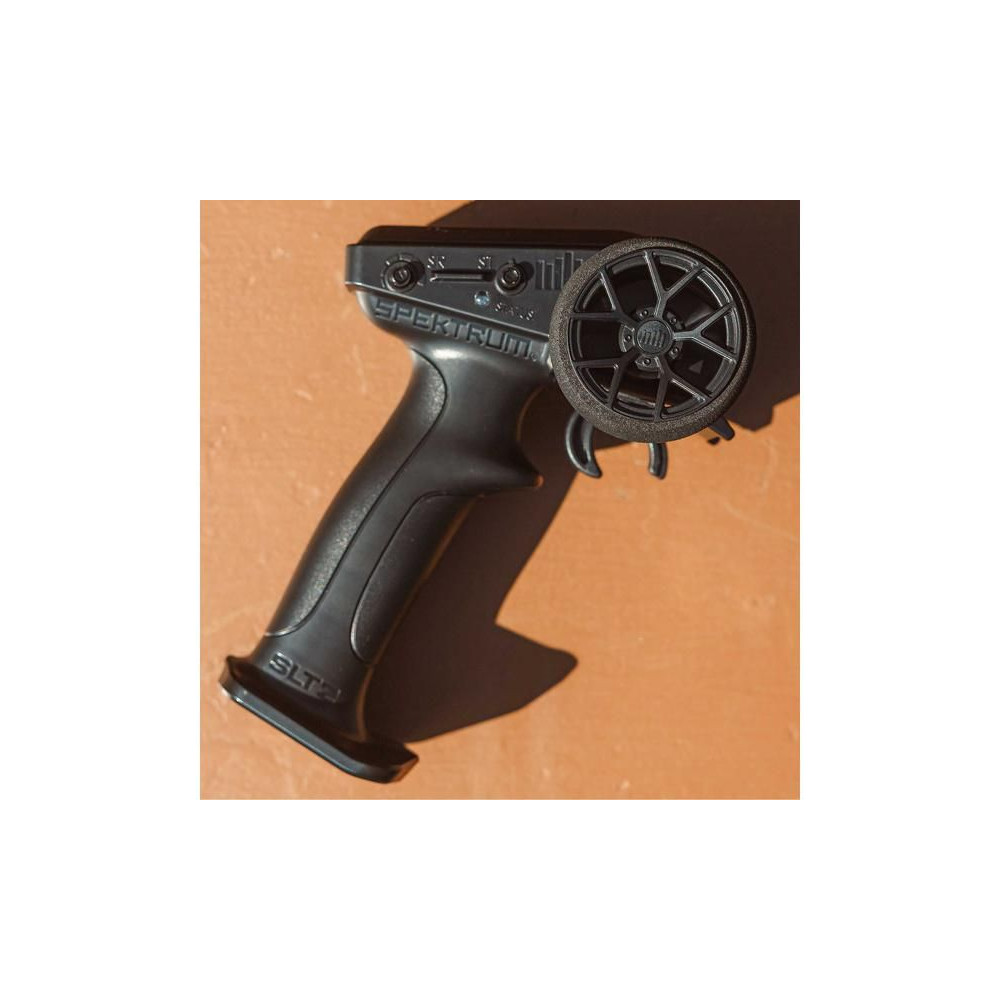 A Spektrum SLT2 2 csatornás adó ideális méretű minden autós számára. Segíthet megtanulni a modell biztonságos irányítását azáltal, hogy a modell maximális sebességét 50%-ra vagy 75%-ra korlátozza, amíg készen nem állsz a teljes teljesítményre. A csomag 4 db AA elemet tartalmaz a jeladóhoz.