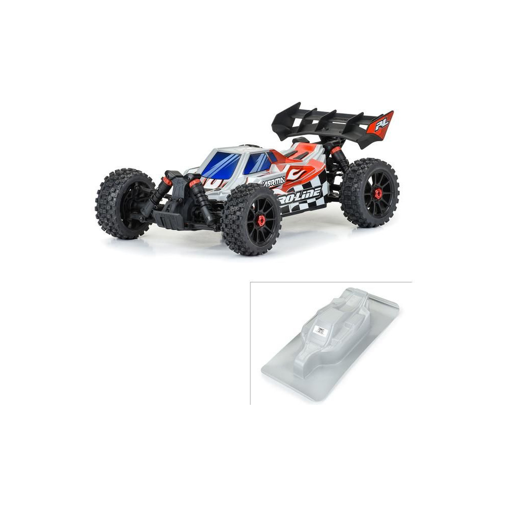 Pro-Line átlátszó Axis karosszéria, Arrma Typhon 223S RC autómodellekhez, 1:8 méretarányban. Szürke lexanból készült, festést nem igényel. A legendás Axis versenykarosszéria alacsony ívű, éles vonalvezetésű kialakításával friss, új megjelenést kölcsönöz modellednek.