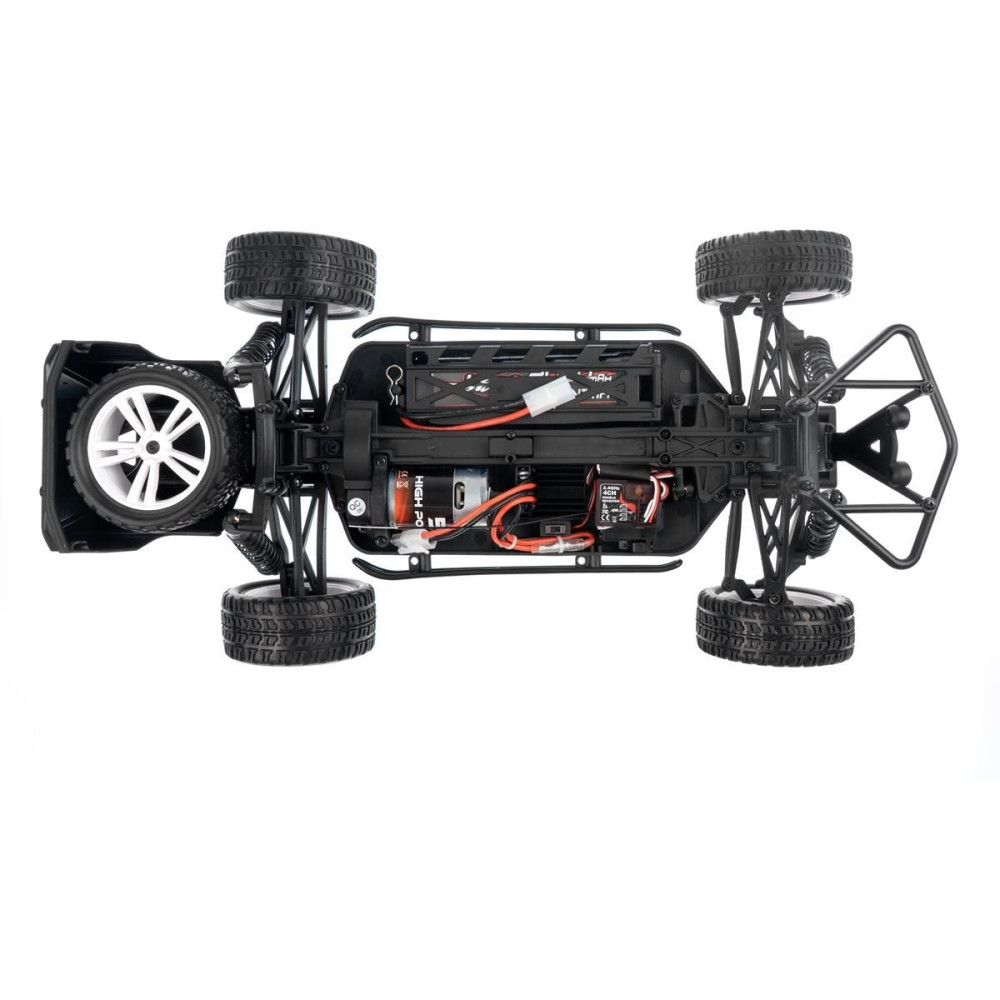 1:10 méretarányú, egyenáramú motorral hajtott modell, RTR szettben, 2,4 GHz-es kormánykerékkel ellátott távirányítóval, 2000 mAh-s 7,2 V-os NiMH akkumulátorral és USB töltővel.Více informací