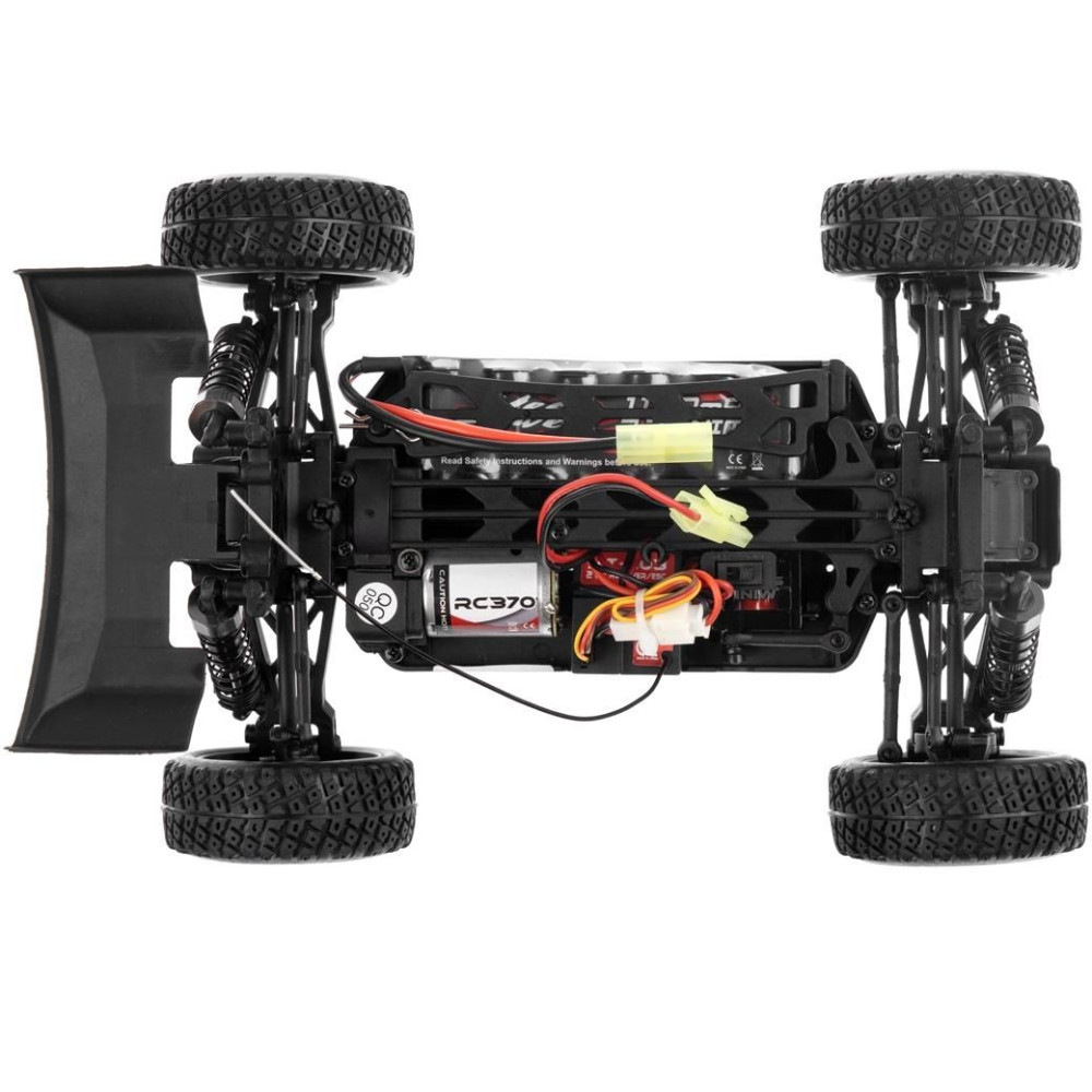 A konstrukció főként műanyagból készült, a meghajtást egy "380"-os egyenáramú motor biztosítja, amely mind a négy kereket (4WD) állandó áttételen keresztül hajtja . Az RC készlet fedélzeti része egy 2 az 1-ben egységből (amely egy vevőegységet és egy kétirányú vezérlőt tartalmaz) és egy kormányszervóból áll. Az alváz szerkezetileg a nagyobb modelleken alapul, így független kerékfelfüggesztésekkel, olajos lengéscsillapítókkal stb. büszkélkedhet. A vezérléshez egy 2,4 GHz-es sávban működő RC készletet használnak.