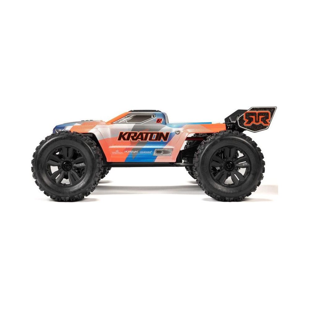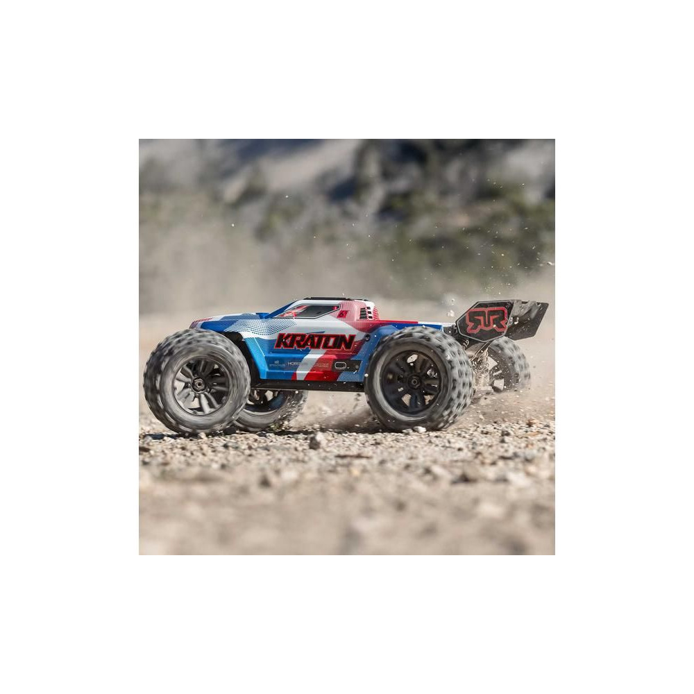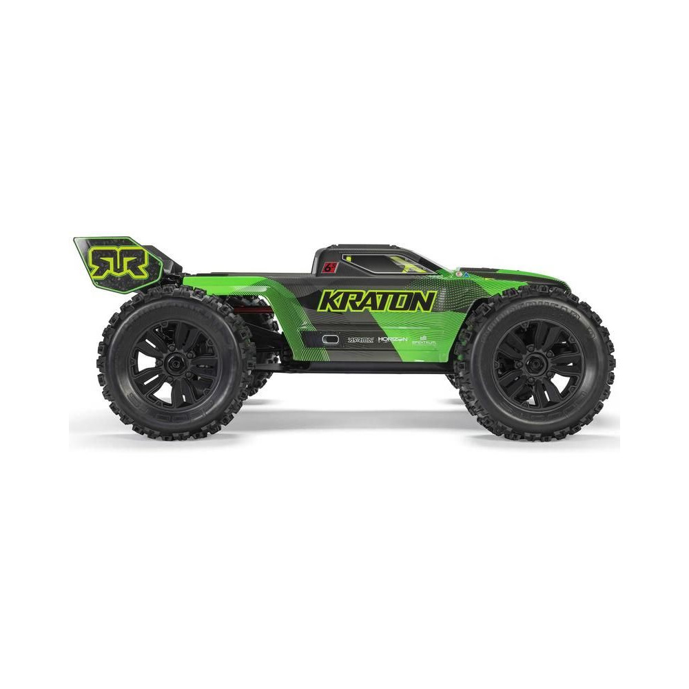 A legendás Arrma Kraton 6S BLX RC modellautó új, 1:8 méretarányú V6-os változata , amely lenyűgöző sebességét és erejét új szintre emeli, és kulcsfontosságú fejlesztéseket tartalmaz a tartósság érdekében. Nagy szilárdságú EXB (Extreme Bash) alkatrészeket szereltek be a féktelen vezetés érdekében. Az extra erős AC motor lehetővé teszi , hogy a modell akár 104 km/h sebességet is elérjen. Teljes elektronika található benne új Spektrum Firma V2 szabályozóval, fém fogaskerekes szervóval és vevővel. A kiváló vezetési tulajdonságokat aszfalton és terepen is garantálja a széles nyomtávú független felfüggesztés és a hangolt, differenciálművekkel ellátott 4x4-es hajtás. A karosszéria patent nélküli a gyors és egyszerű összeszerelés és szétszerelés, valamint a patent nélküli letisztult megjelenés érdekében.