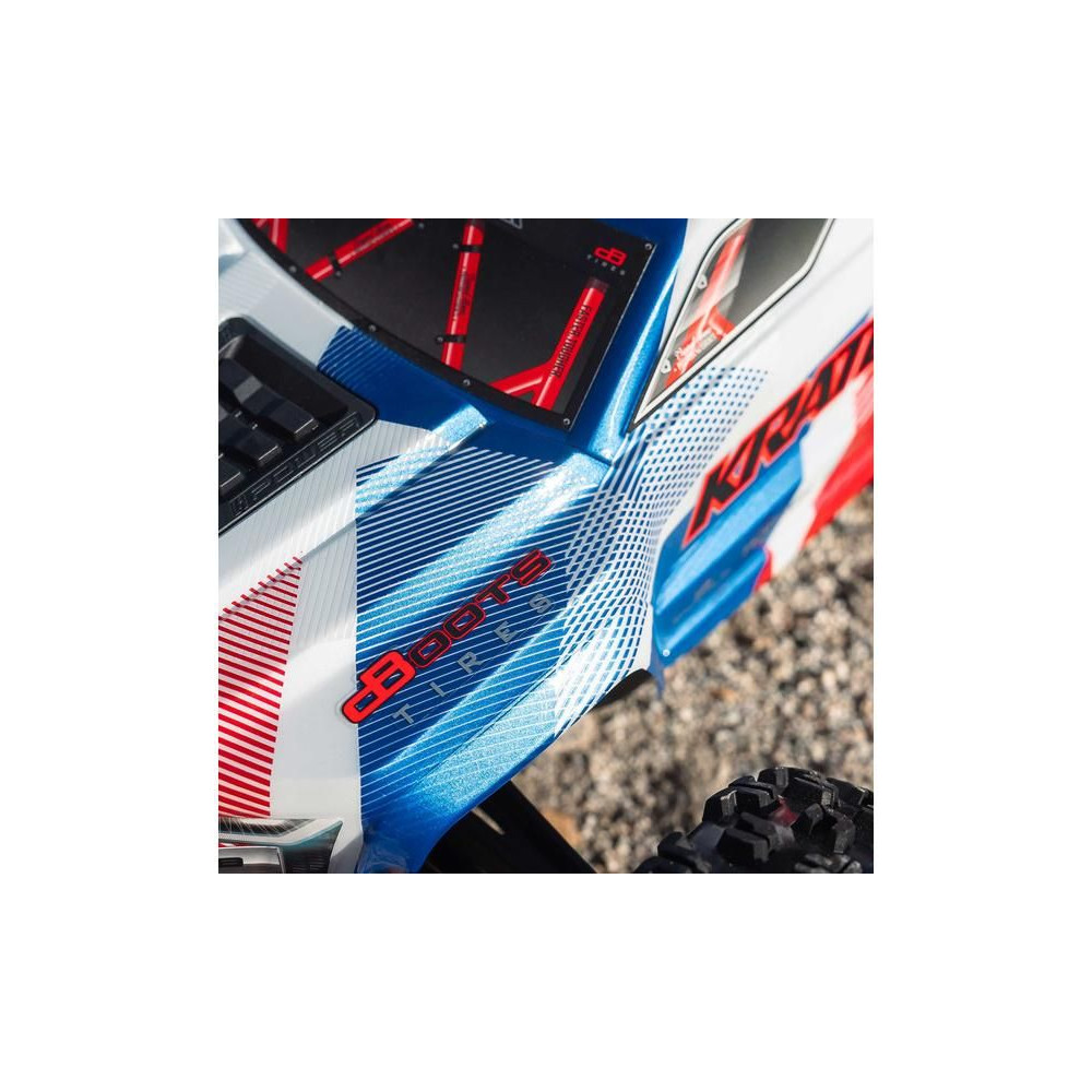 Alkatrész Arrma 1:8 Kraton 6S BLX V6 RC autómodellekhez: kék/piros karosszéria. Polikarbonát...