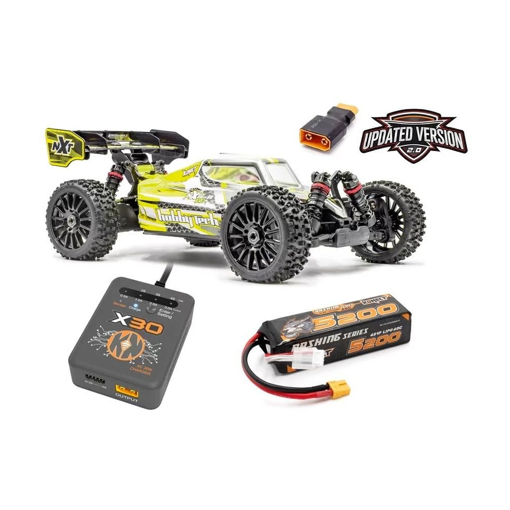 1/8 méretarányú, 4S AC meghajtású, Franciaországban tervezett és fejlesztett 4WD buggy a HOBBYTECH legújabb platformjára építve. A készlet tartalmazza az elektronikát, a karosszériát stb. Ezenkívül egy meghajtó akkumulátort és egy töltőt.