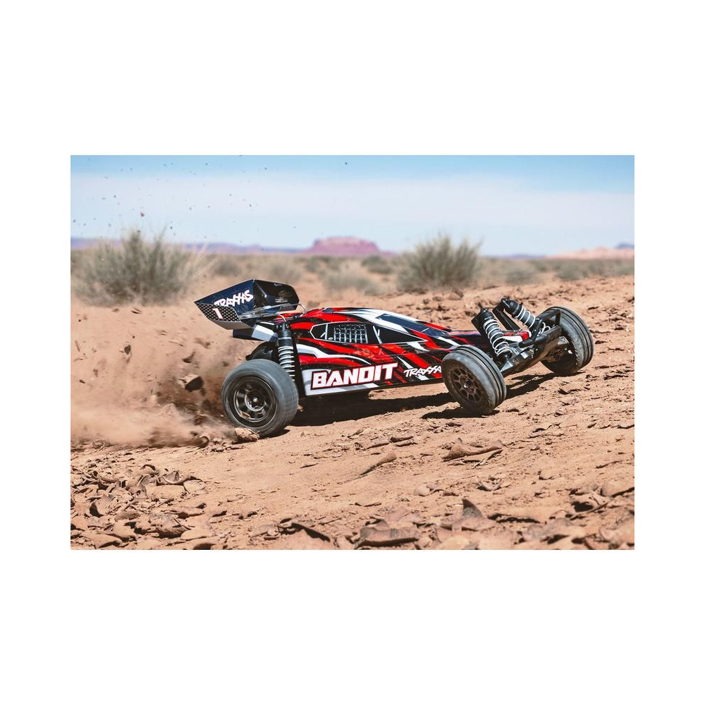 Megfizethető, mégis fürge, gyors és igénytelen Traxxas Bandit 1:10 HD RTR RC autómodell, Buggy típusú. Titan 550 DC motorral működik. A modell akár 56 km/h sebességgel is képes haladni! Tartós alkatrészeket tartalmaz - Extreme Heavy Duty és 2WD meghajtás. NiMH akkumulátor és USB-C töltő a csomagban.