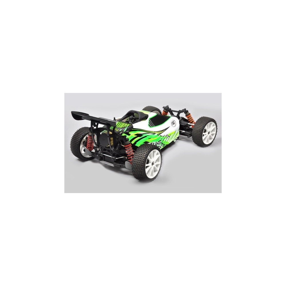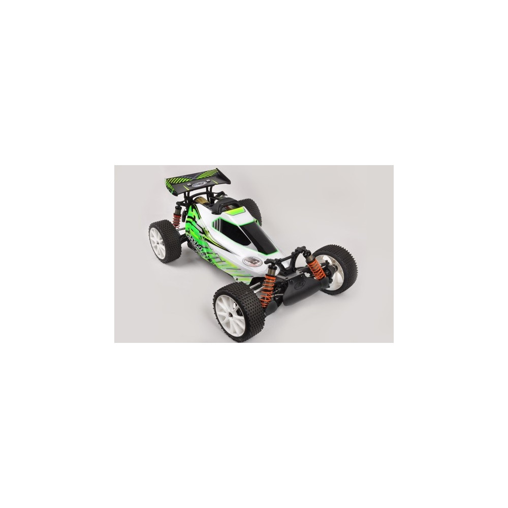 Összeszerelt modell 1:6-os méretarányban, négy kerék-meghajtással, karosszériával, 26cm-es belső égésű motorral, 2,4 GHz-es RC szettel.