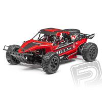 Az alacsony súlyelosztásának és az áramvonalas kialakításának köszönhetően ugratások közben szépen siklik a levegőben. A nagy teljesítményű elektronika, az erős kardántengelyes hajtáslánc és a jó tapadású gumik biztosítják a kiváló gyorsulást és a magas végsebességet. 2.4Ghz-es távirányítóval, 540-es elektromos motorral, akkuval és akkutöltővel.