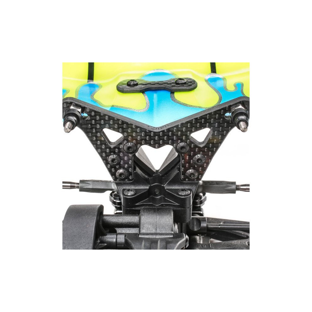 A DC ELITE Race készlet tartalmazza az első és hátsó karbon lengéscsillapító tornyokat, az elektronika rögzítőlemezt és a hátsó szárnytartót.