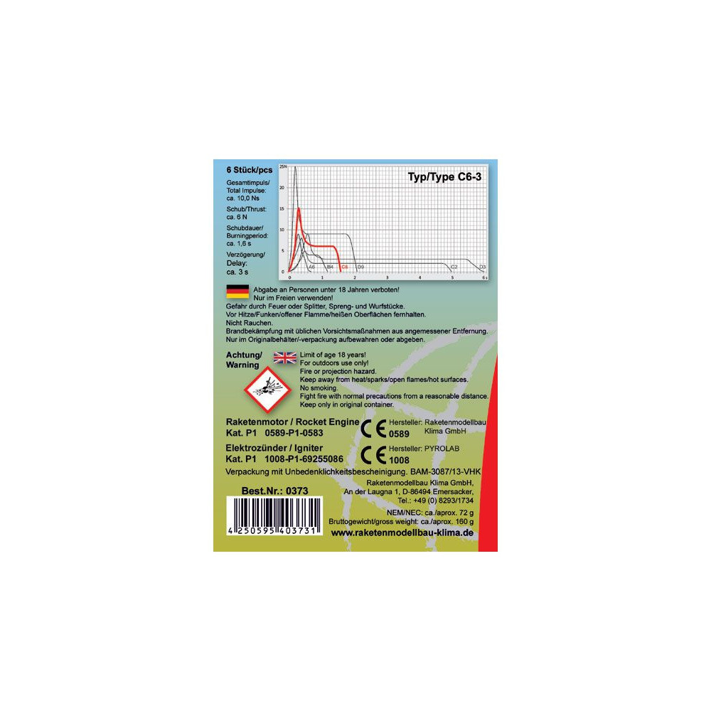 Klima rakétamotor C6-3 EL (6db)
