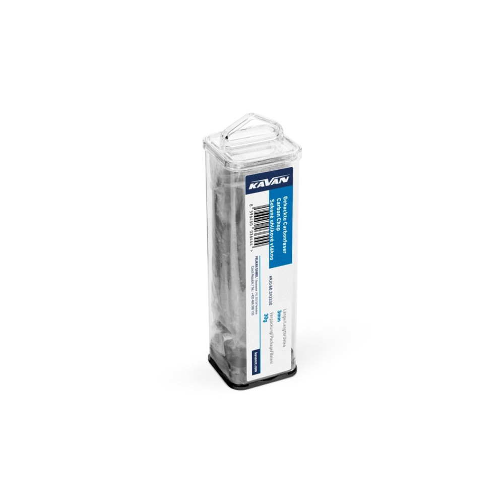 3 mm hosszúságúra vágott szénszál. Alkalmas laminálógyanta erősítésére. 30g-os csomagolás.