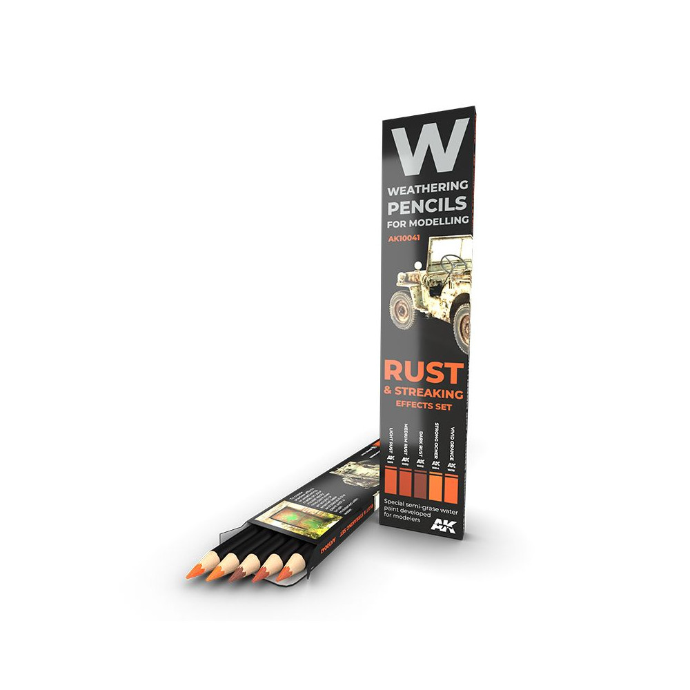 Pomocou tejto sady môžete dosiahnuť akýkoľvek efekt hrdze na akomkoľvek modeli, miešať rôzne tóny a dosiahnuť tak väčšiu chromatickú bohatosť, ktorá dodáva väčší realizmus. Perfektne sa hodí na použitie za mokra, modelárovi umožňuje nekonečné množstvo kombinácií.