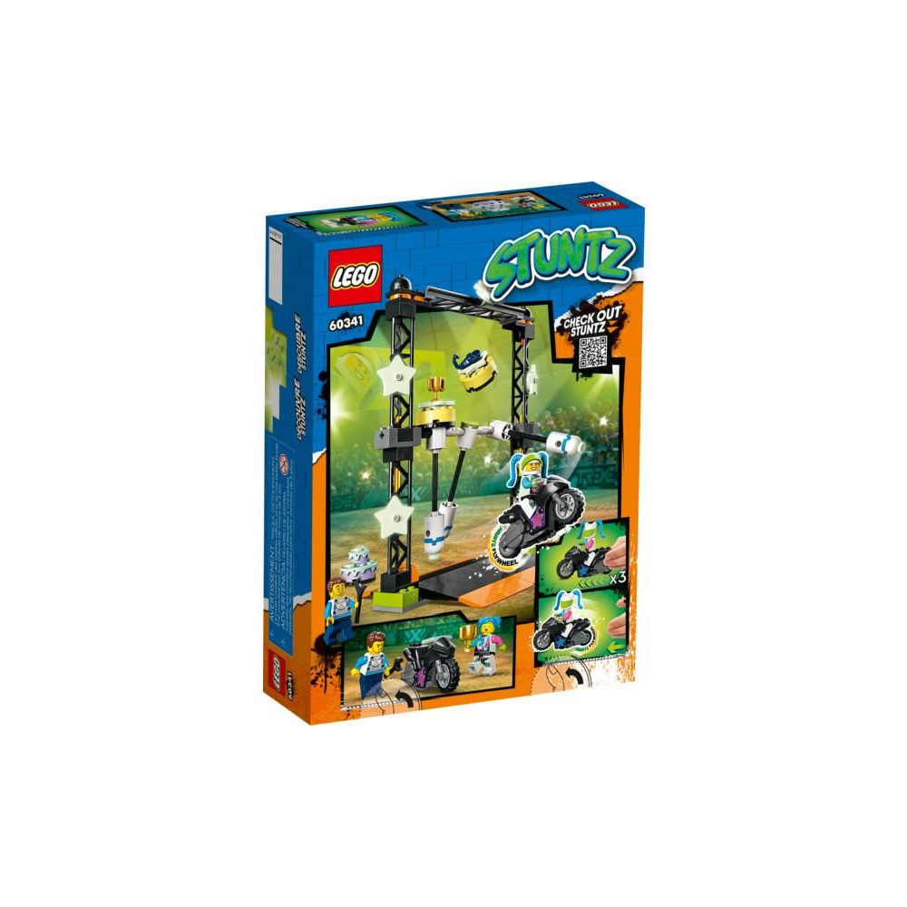 A versengésre vágyó gyerekek imádni fogják a LEGO® City Hammer Stunt Challenge (60341) játékot, amely sötétben világító elemekkel rendelkezik. A kihívásuk az, hogy egy lendkerekes motorkerékpárral leküzdjenek egy akadályt, és a győztes nyereményt nyerjen. Az akcióról és a feszültségről a LEGO City sorozat 2 népszerű karaktere gondoskodik. A még nagyobb adag kaszkadőrakcióért a készlet kombinálható a LEGO City Stuntz sorozat többi tagjával.
