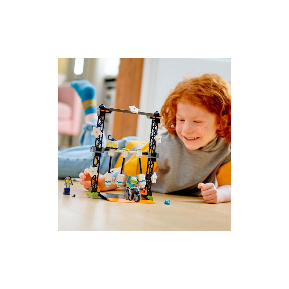 A gyerekek szó szerint imádni fogják a LEGO® City Hammer Stunt Challenge-et, amely sötétben világító elemeket tartalmaz. A kihívásuk az, hogy egy lendkerekes motorkerékpárral leküzdjenek egy akadályt.