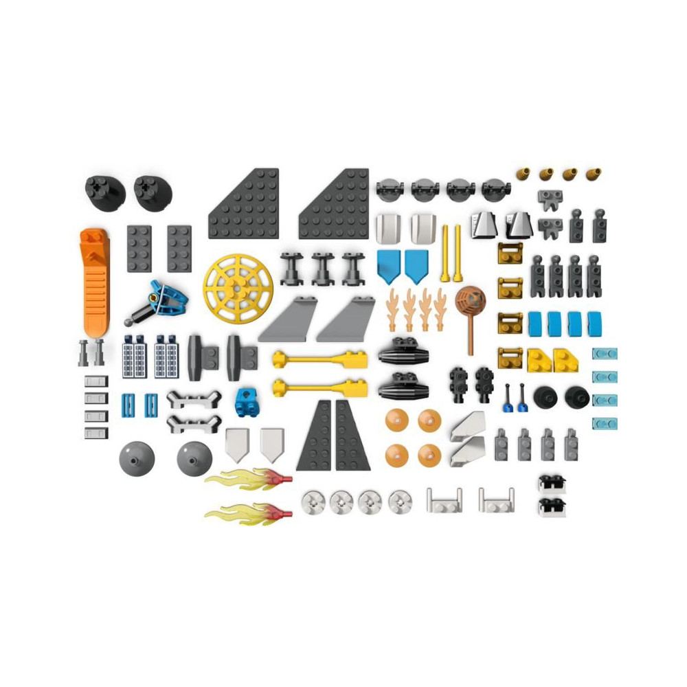 - Mi van a dobozban? - LEGO® darabok, amelyekre a gyerekeknek szükségük lesz egy űrhajó építéséhez és szórakoztató építési feladatok megoldásához, valamint 2 aszteroida, egy Mars-környezet, 3 minifigura és egy robotkutya figura.