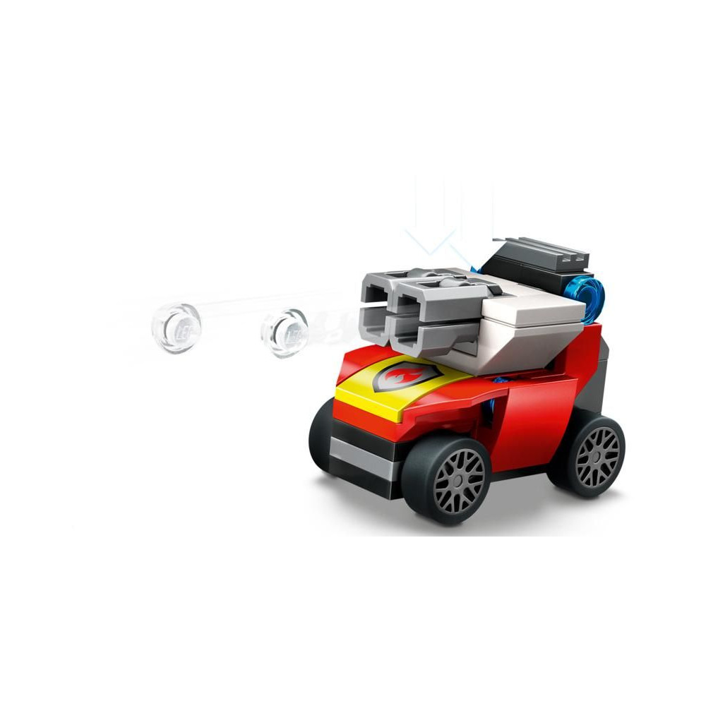 - Extrák és funkciók - A tűzoltóautóhoz működő csörlő tartozik, a gyerekek pedig a tűzoltóágyúval vagy a drónnal vízdarabokat lőhetnek ki a tűz eloltására.