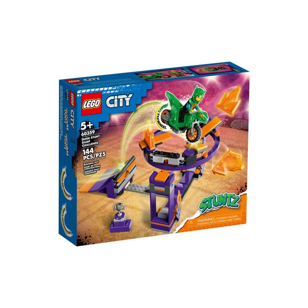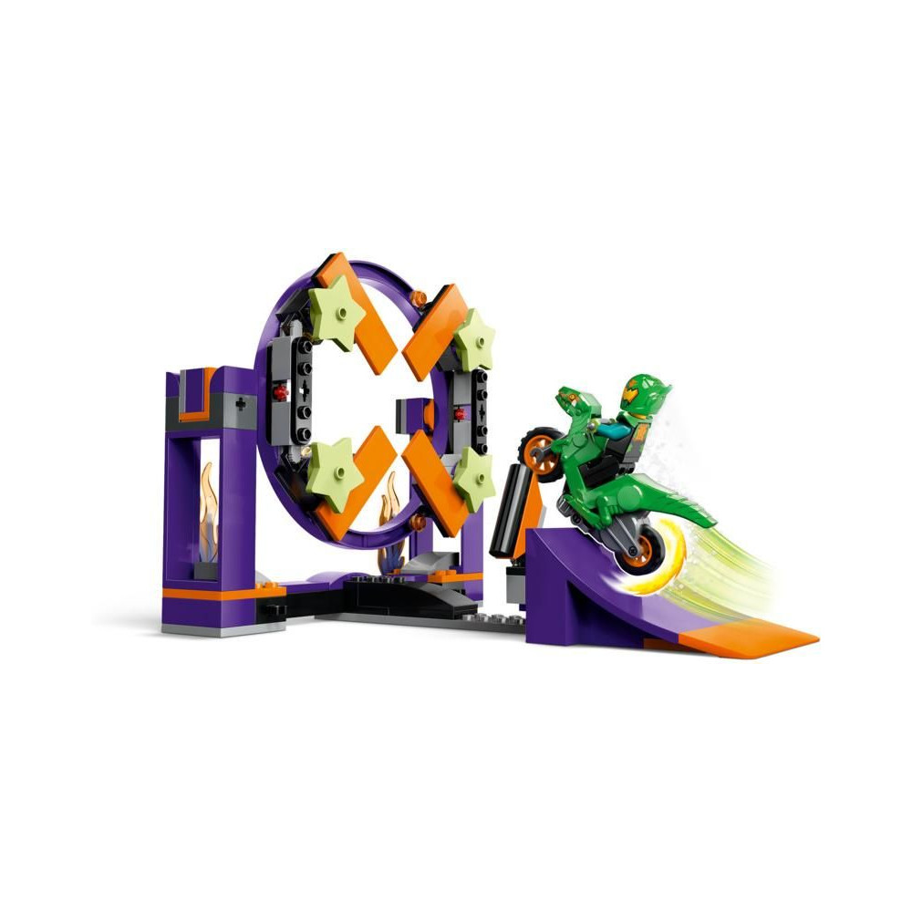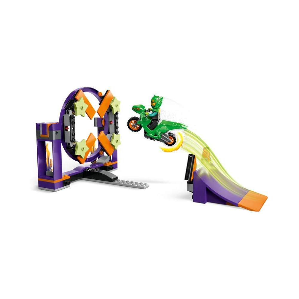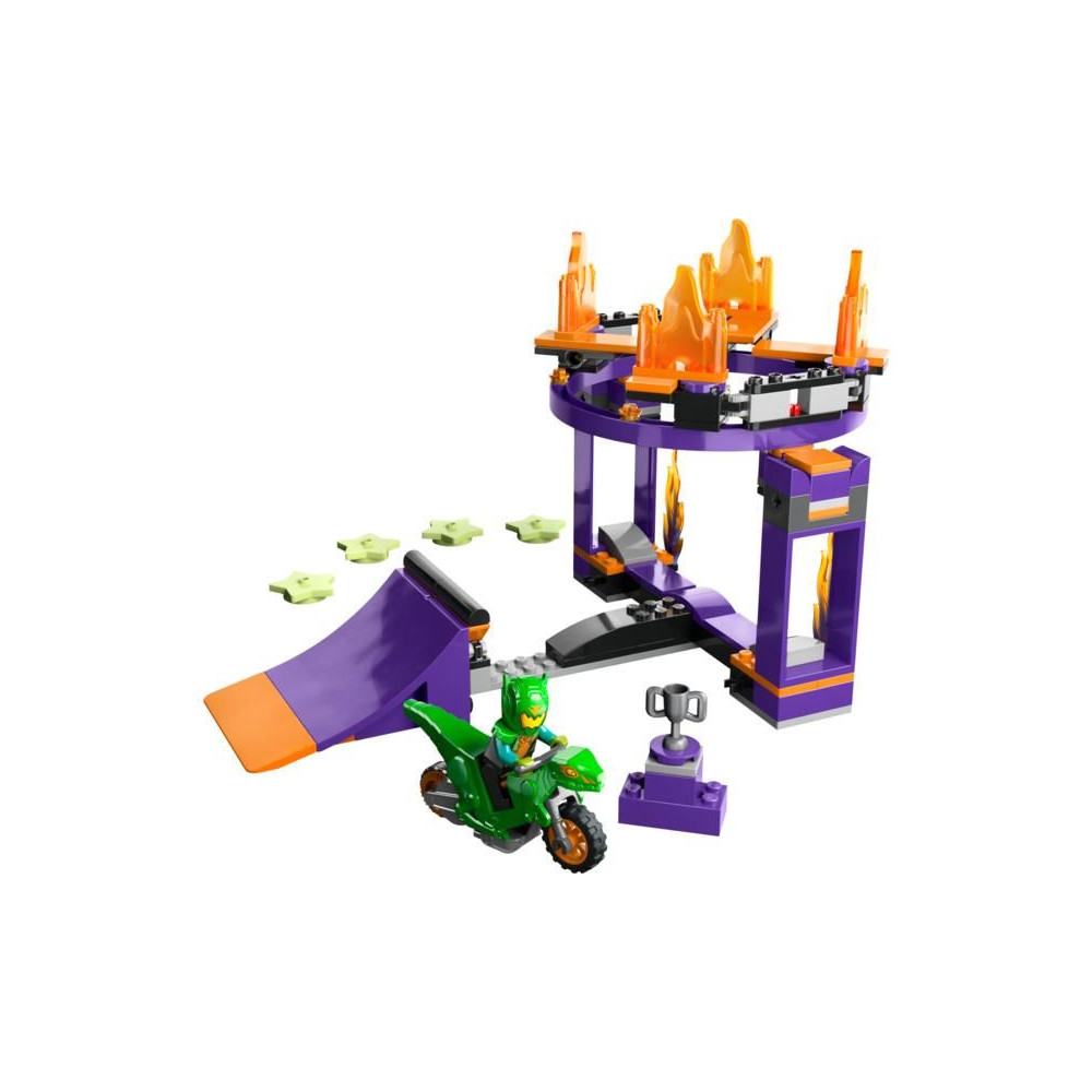 A LEGO® City Stunt Challenge készlet rámpával és karikával a gyerekeknek egy nagy adag akciódús játékban lesz részük. Egy lendkerékkel ellátott kaszkadőrbiciklire és egy minifigurás versenyzőre számíthatnak.